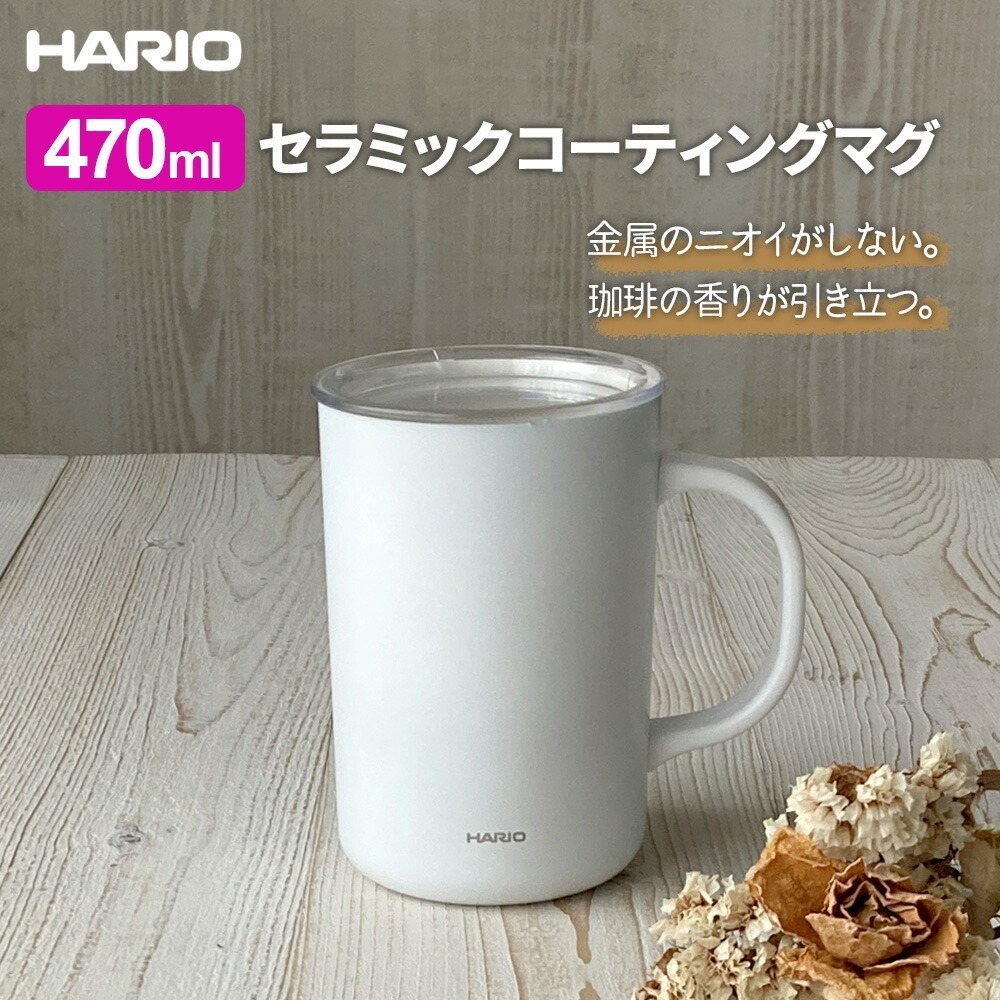 HARIO แก้วมัค 2 ชั้นสูญญากาศเคลือบเซรามิก 470มล. (CMG-470) มีสีขาว/ดำ | แก้วเก็บความร้อน แก้วเก็บความเย็น