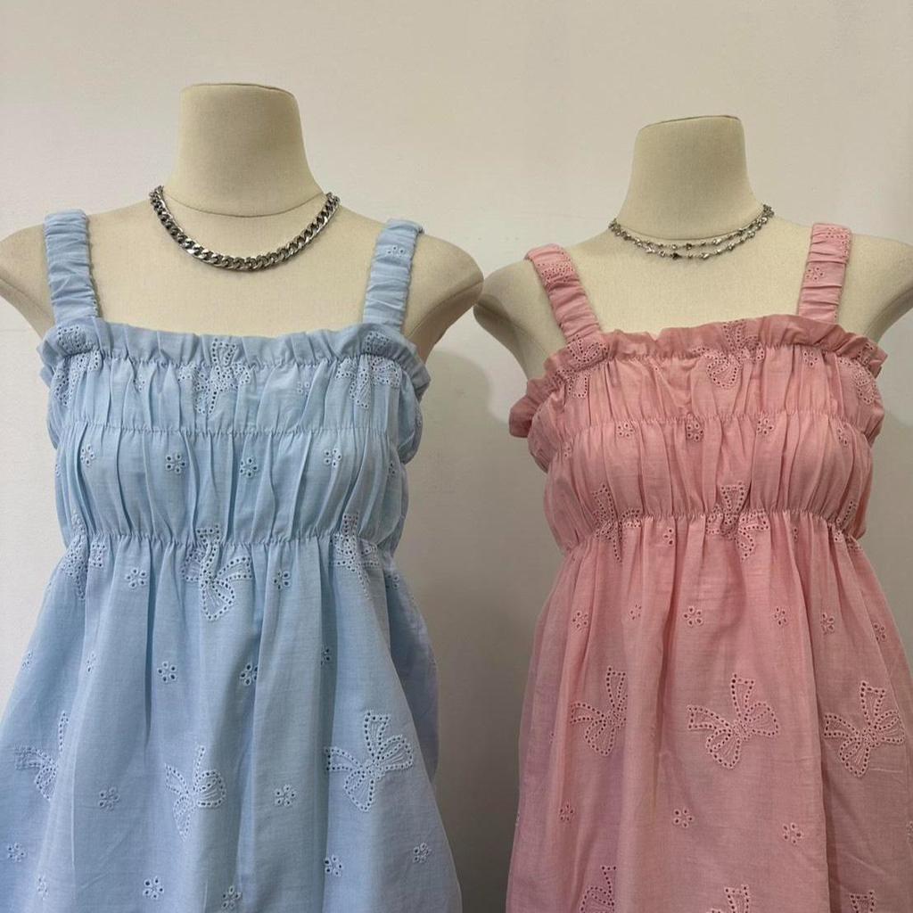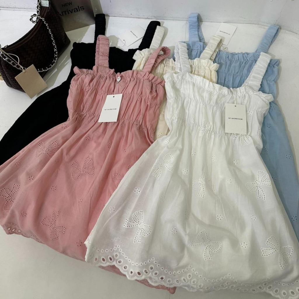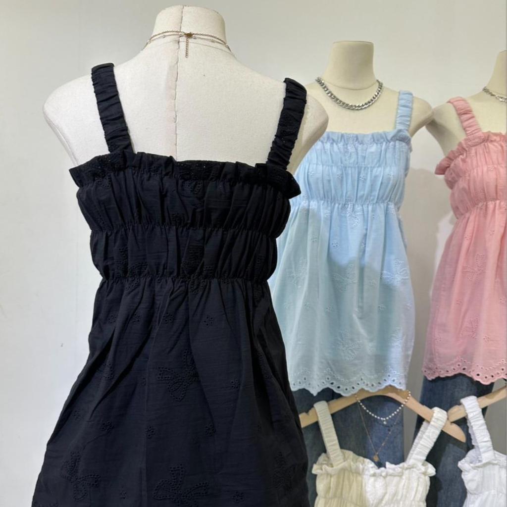 KN.Clothes เสื้อสายเดี่ยวตัวยาว แต่งสม็อคหน้าอก สายยางยืด เนื้อผ้าคอตตอนปักฉลุ MATINEE