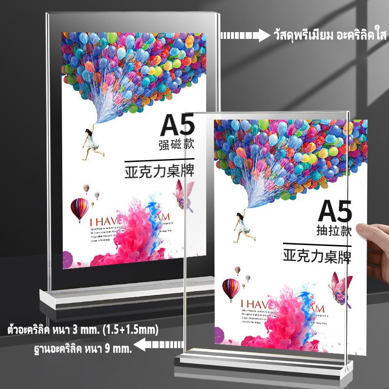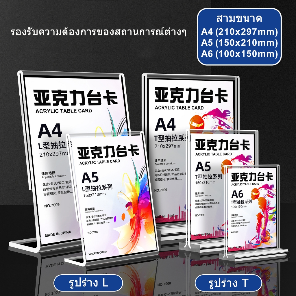 ป้ายตั้งโต๊ะ ป้ายอะคริลิคขนาดA4/A5/A6 หนา2mm แนวตั้ง ป้ายโชว์เอกสาร โชว์หนึ่งด้าน ป้ายเมนู ที่ใส่โบว์ชัวร์ Acrylic