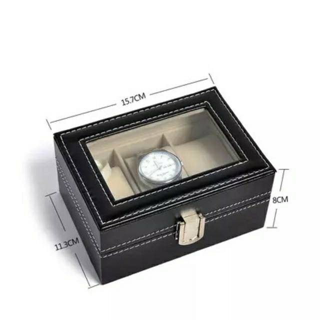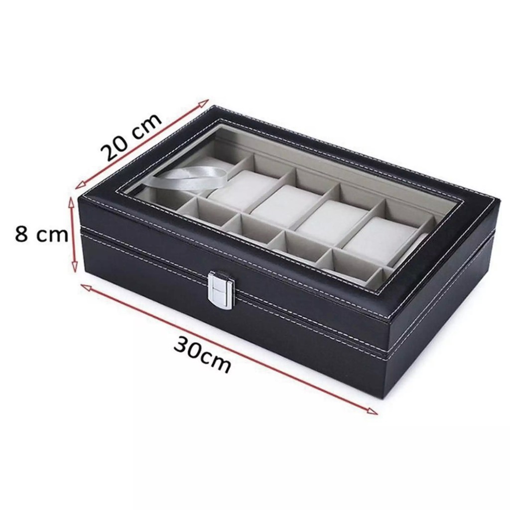 กล่องเก็บนาฬิกาข้อมือ กล่องใส่นาฬิกา 3/12 เรือน ฝากระจก กล่องใส่เครื่องประดับ Leather Watch Box (Black)