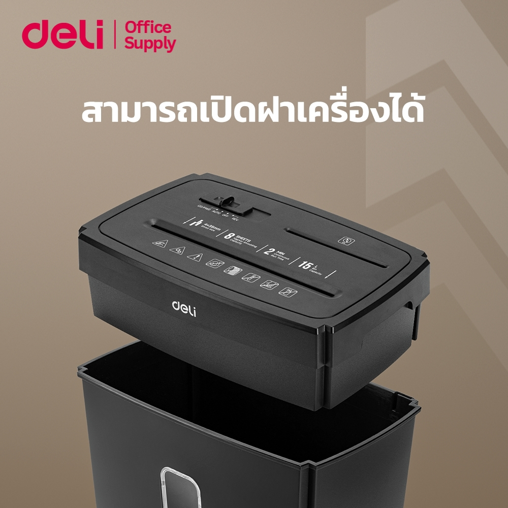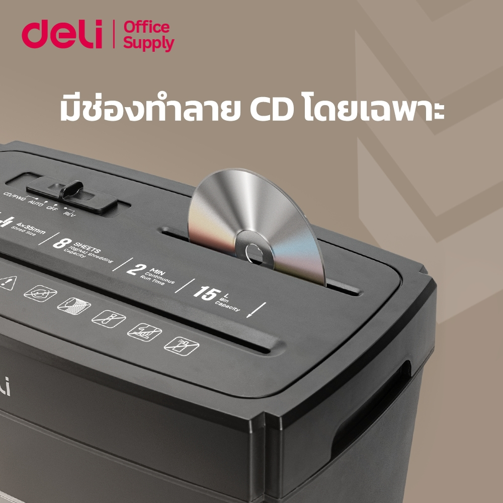 Deli เครื่องทำลายเอกสาร 15ลิตร เสียงเบา ย่อยCDและการ์ดได้ วัสดุแข็งแรงทนทาน ทำลายเร็ว Paper Shredder