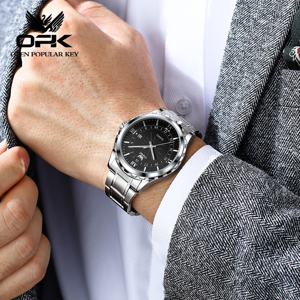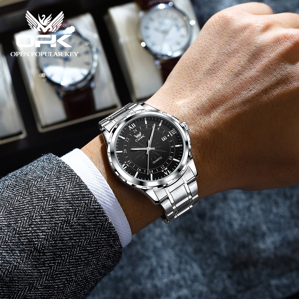 OPK นาฬิกา ผู้ชาย แฟชั่น watch 100% แท้ กันน้ำ สแตนเลส สายนาฬิกา ควอตซ์