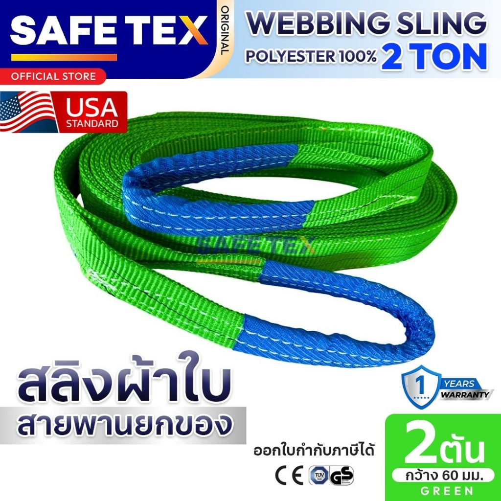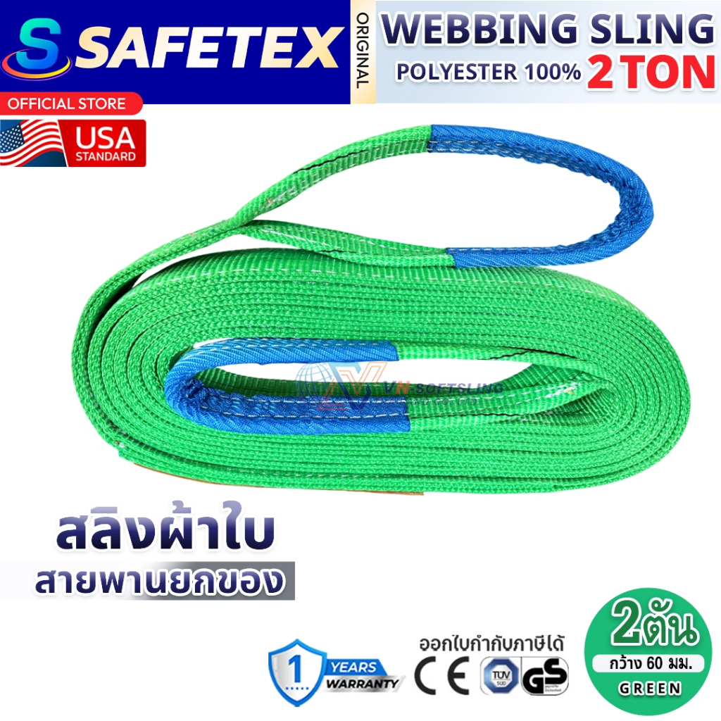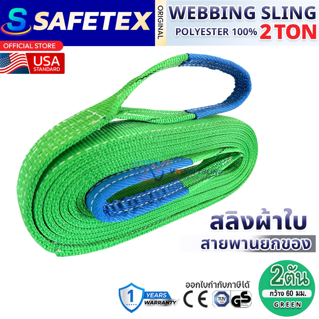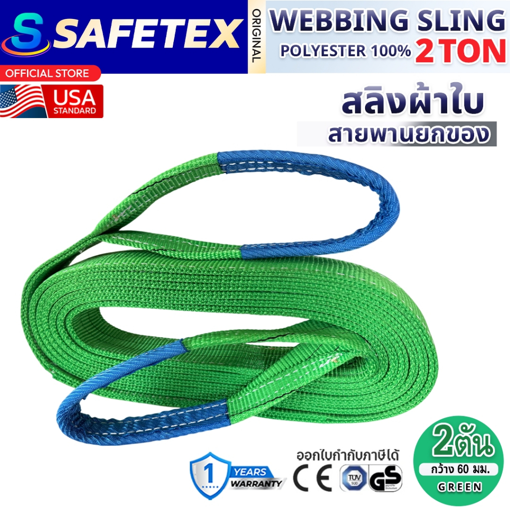 สายพานยกของ 2 ตัน SAFETEX USA แท้ สลิงผ้าใบ สลิงอ่อน สลิงแบน สลิงโพลีเอสเตอร์ 100%