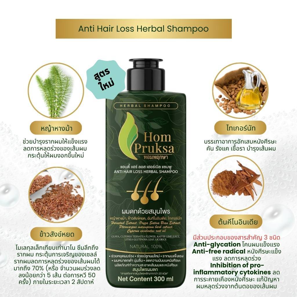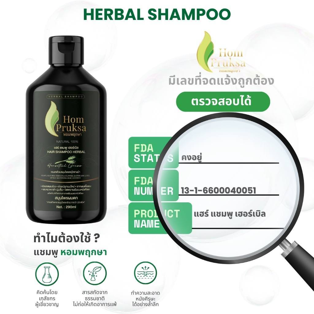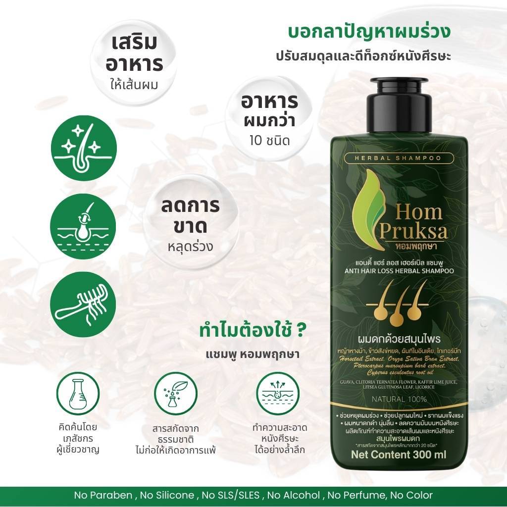 Hom Pruksa แชมพูลดผมร่วง Anti Hair Loss Herbal Shampoo คู่ เซรั่มผมหนา Extra Tonic หอมพฤกษา สูตรสมุนไพรหลัก 20 ชนิด