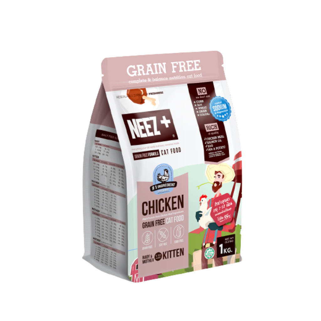 NEEZ+ Grain Free นีซพลัส อาหารเม็ดแมว สูตรไม่มีธัญพืช เม็ดกินง่าย ถุงซีลแน่น เม็ดแมว ขนาด 1 kg