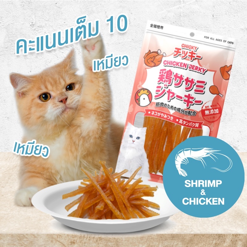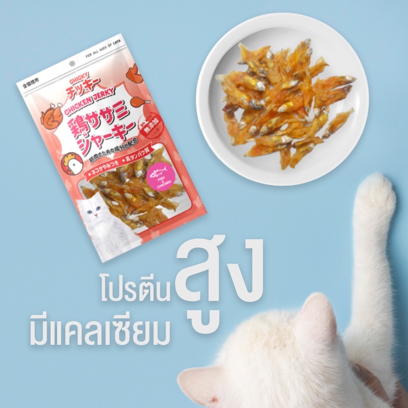 ขนมแมว Chicky 30-45 กรัม ปลาแท้100% โปรตีนจากไก่ ไม่เติมเกลือ