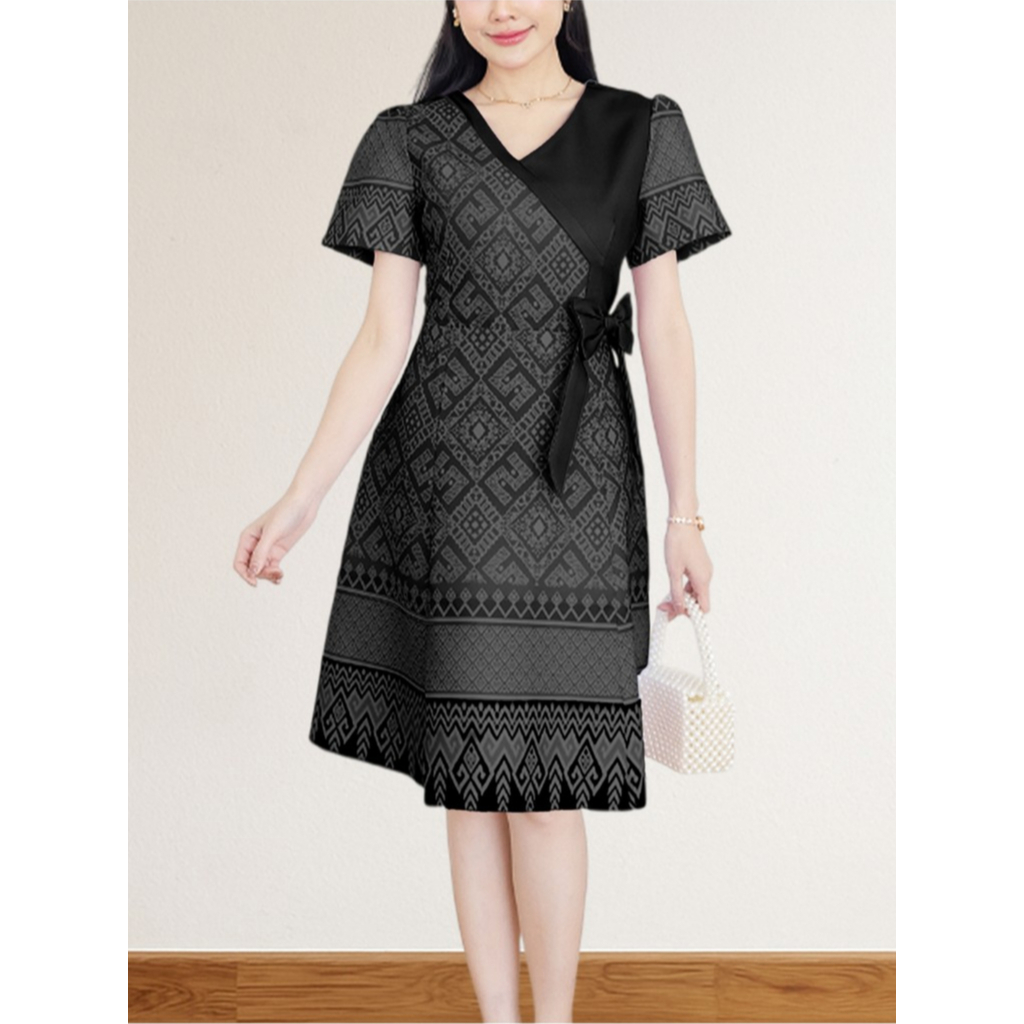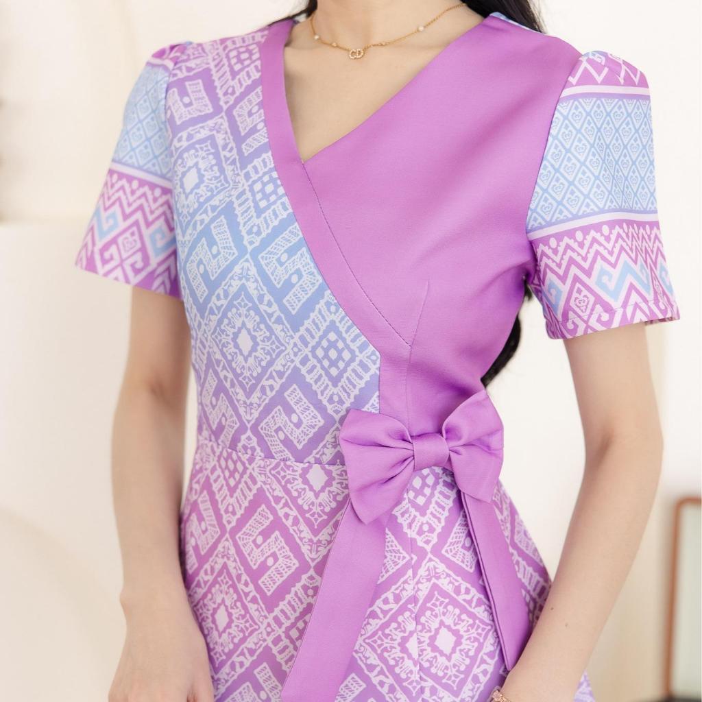 MOCCA's มอคค่า ชุดเดรสลายไทย ดีเทลไล่เฉดสีและโบว์ตกแต่ง งานซิปหลัง ทำให้ดูมีสไตล์และโดดเด่น