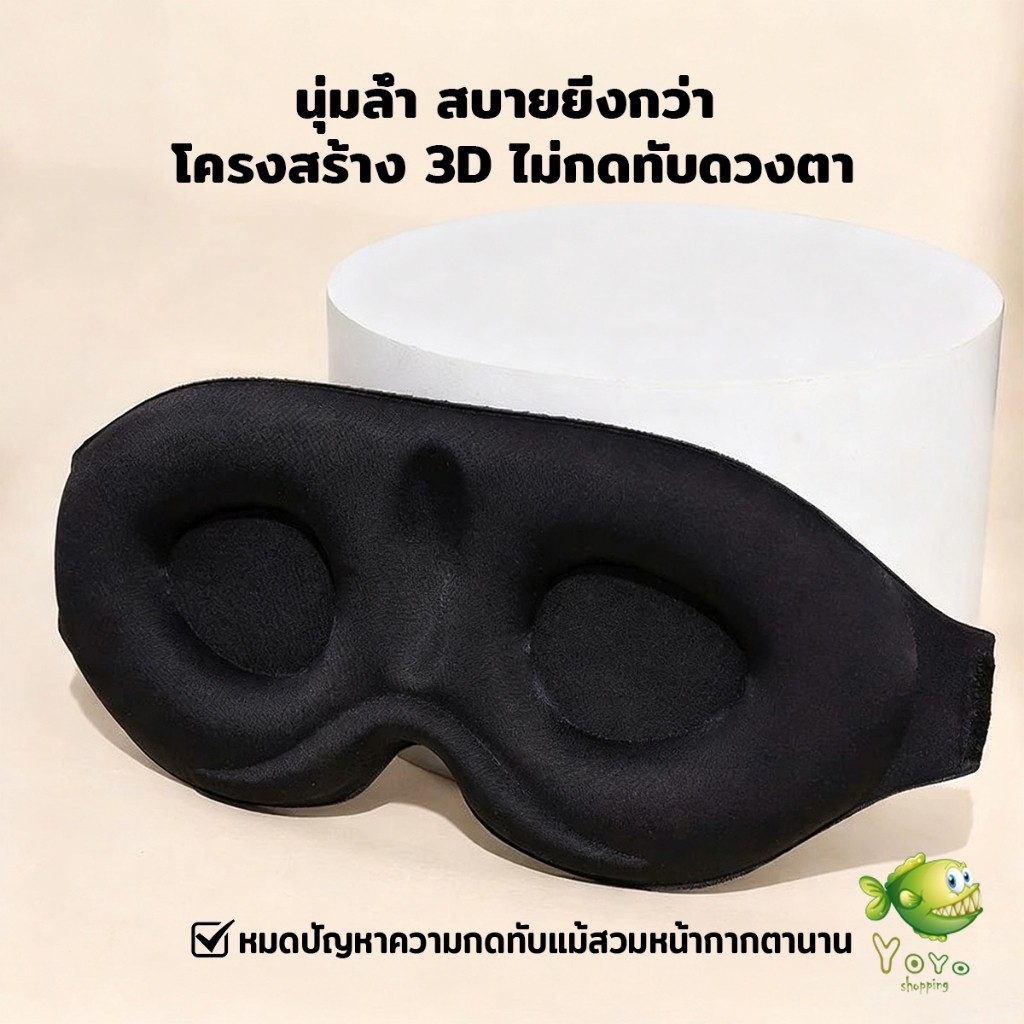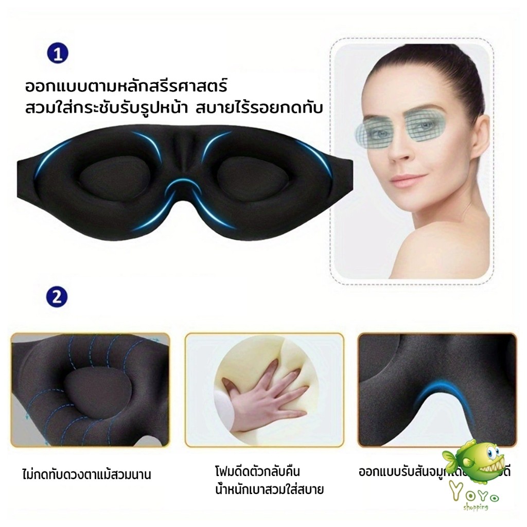 YOYO หน้ากากปิดตานอนหลับ แบบนุ่ม 3D สีดำ ผ้าปิดตานอน แบบพกพา นุ่มสบาย Sleeping Eyeshade