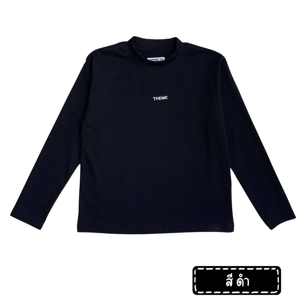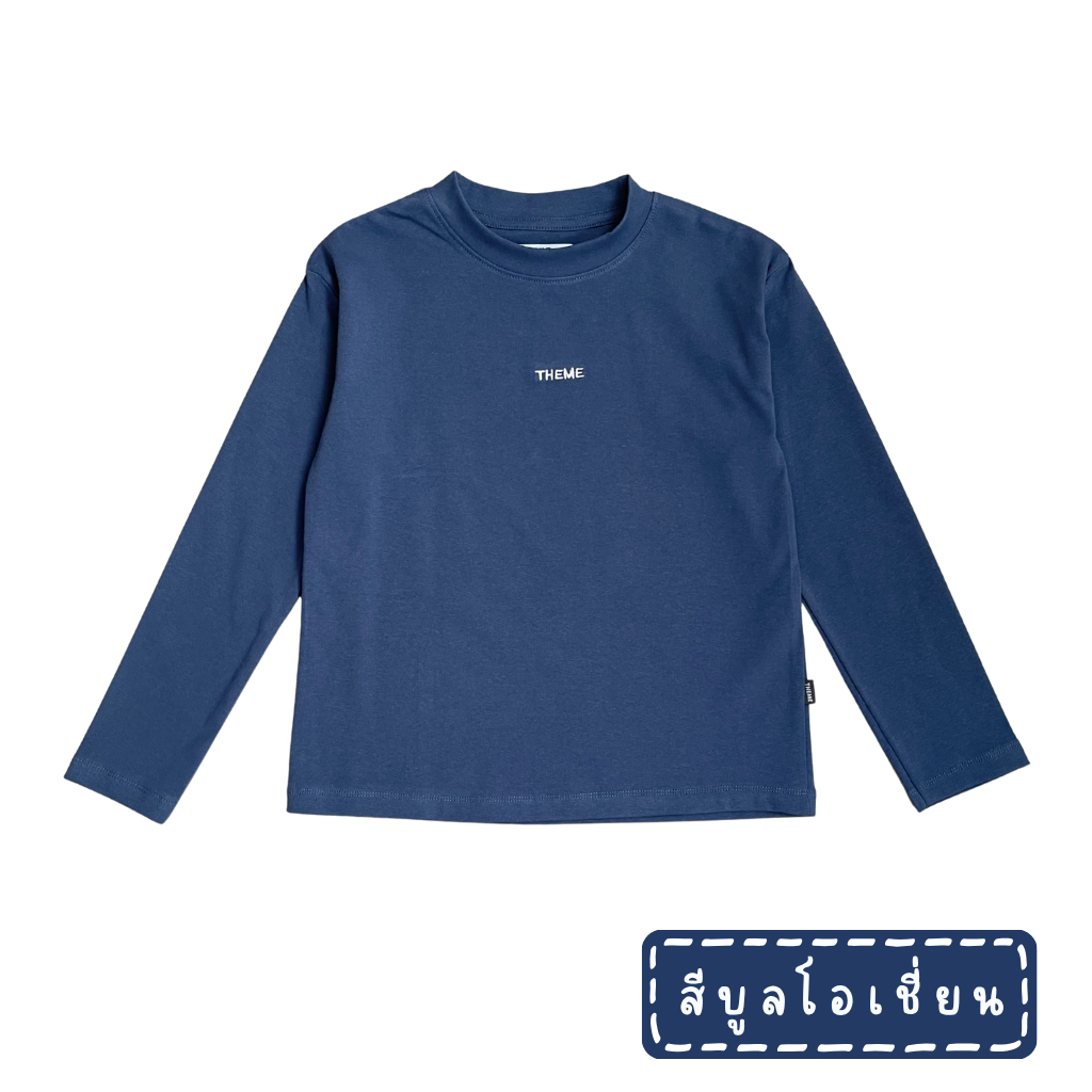 แขนยาว Cotton Japan เสื้อยืดเด็กสีพื้นทรงโอเวอร์ไซส์ปักแบรนด์ THEME