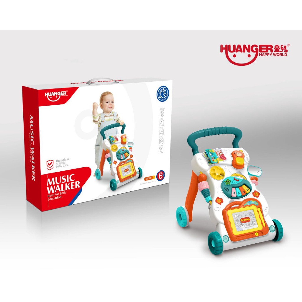 Huanger รถหัดเดิน เปียโนและกระดาน Baby walker ของเด็กเล่น มีเสียง มีไฟ ของเล่นเสริมพัฒนาการ