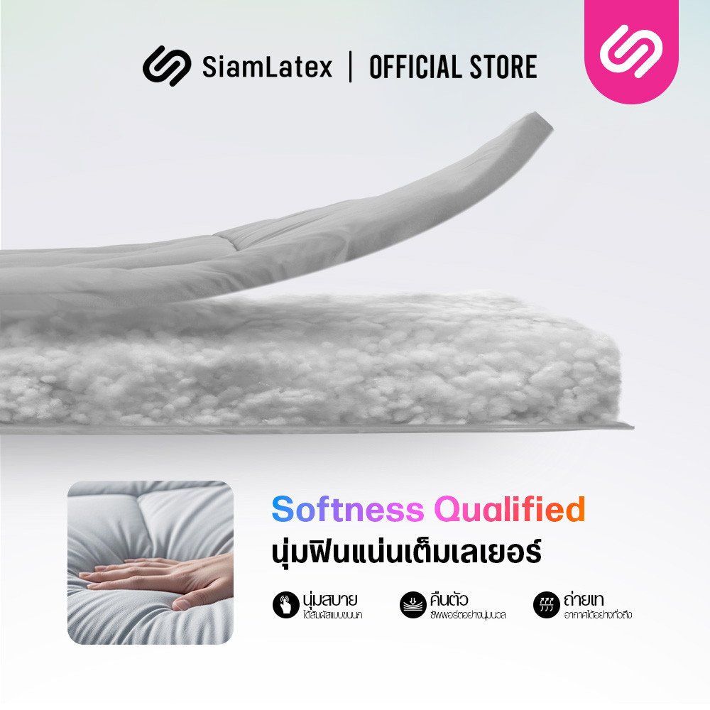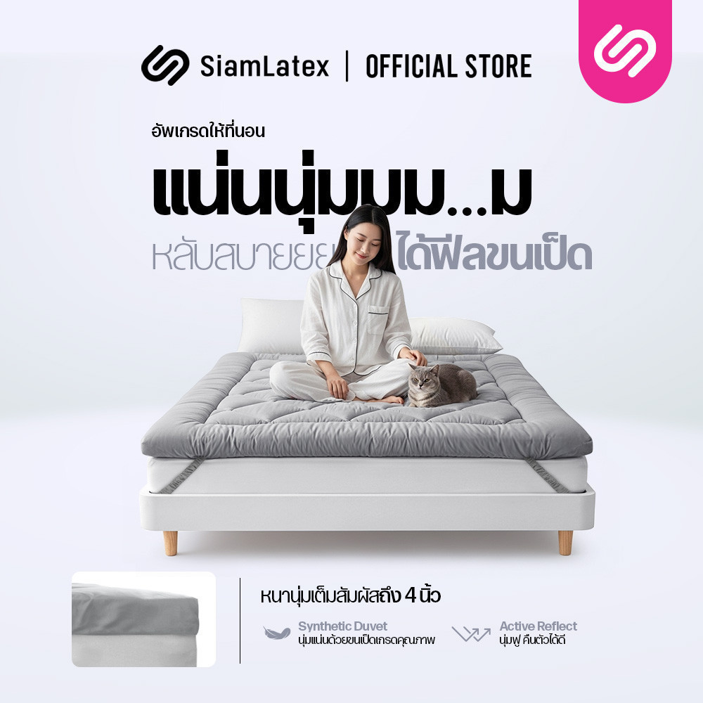 SiamLatex Designate ท็อปเปอร์ ใยขนเป็ดเทียม หนา 4 นิ้ว (ขนาด 3.5/5/6 ฟุต) นุ่ม ฟู สายรัด 4 มุม