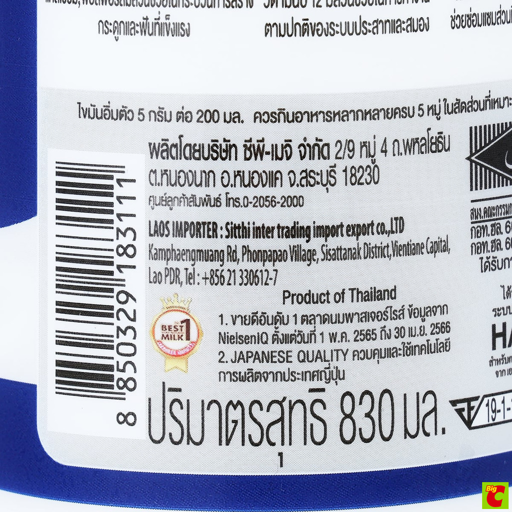ซีพี-เมจิ น้ำนมโคพาสเจอร์ไรส์ 830 มล.