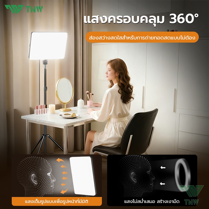 TNW 11นิ้ว LED Panel Light ไฟสตูดิโอ+ขาตั้ง2.1m ปรับได้3สี ไฟสตูดิโอ ปรับได้360° ไฟถ่ายภาพ รีโมทแสงได้ ไฟต่อเนื่องStudio