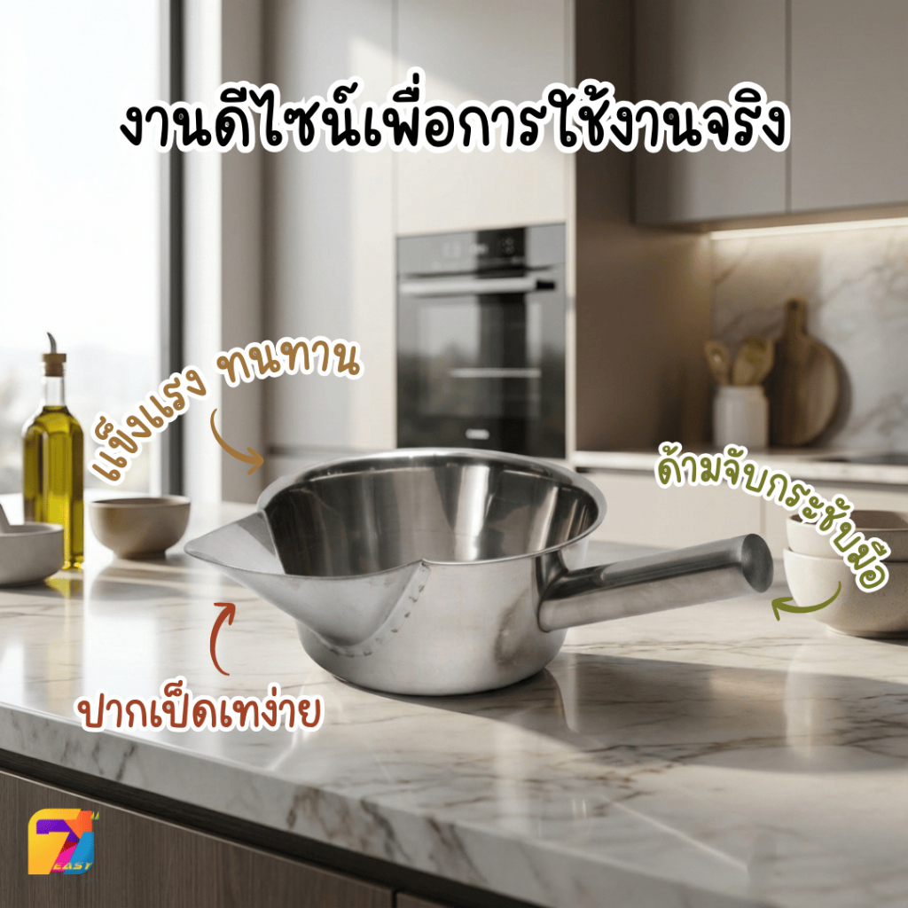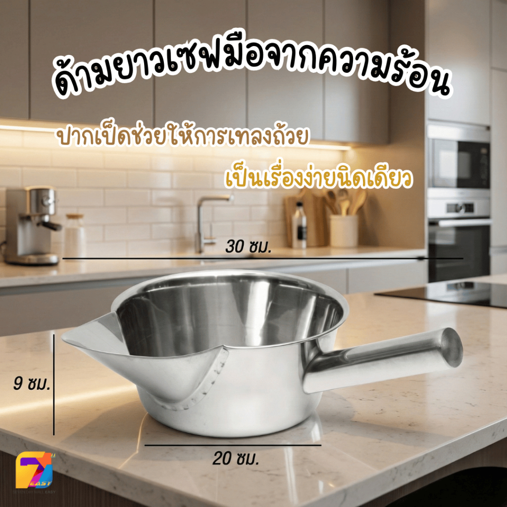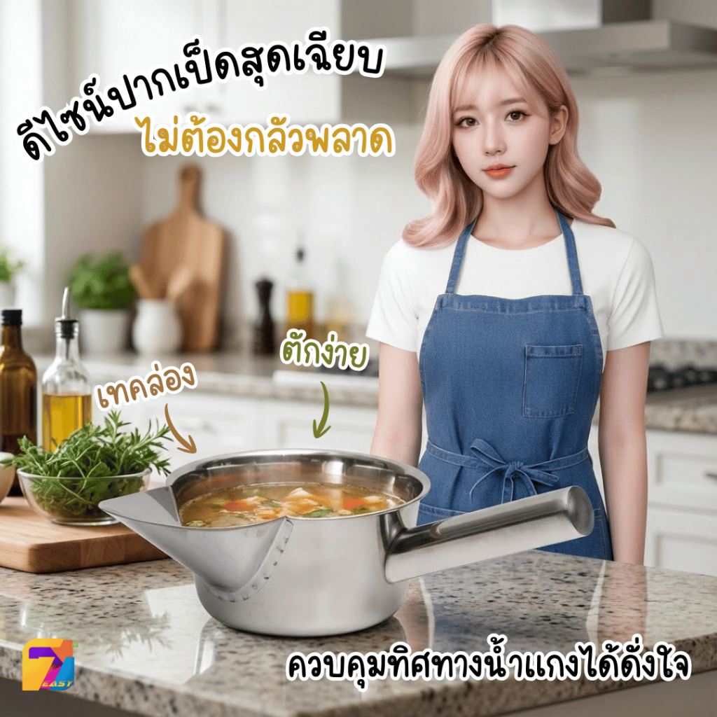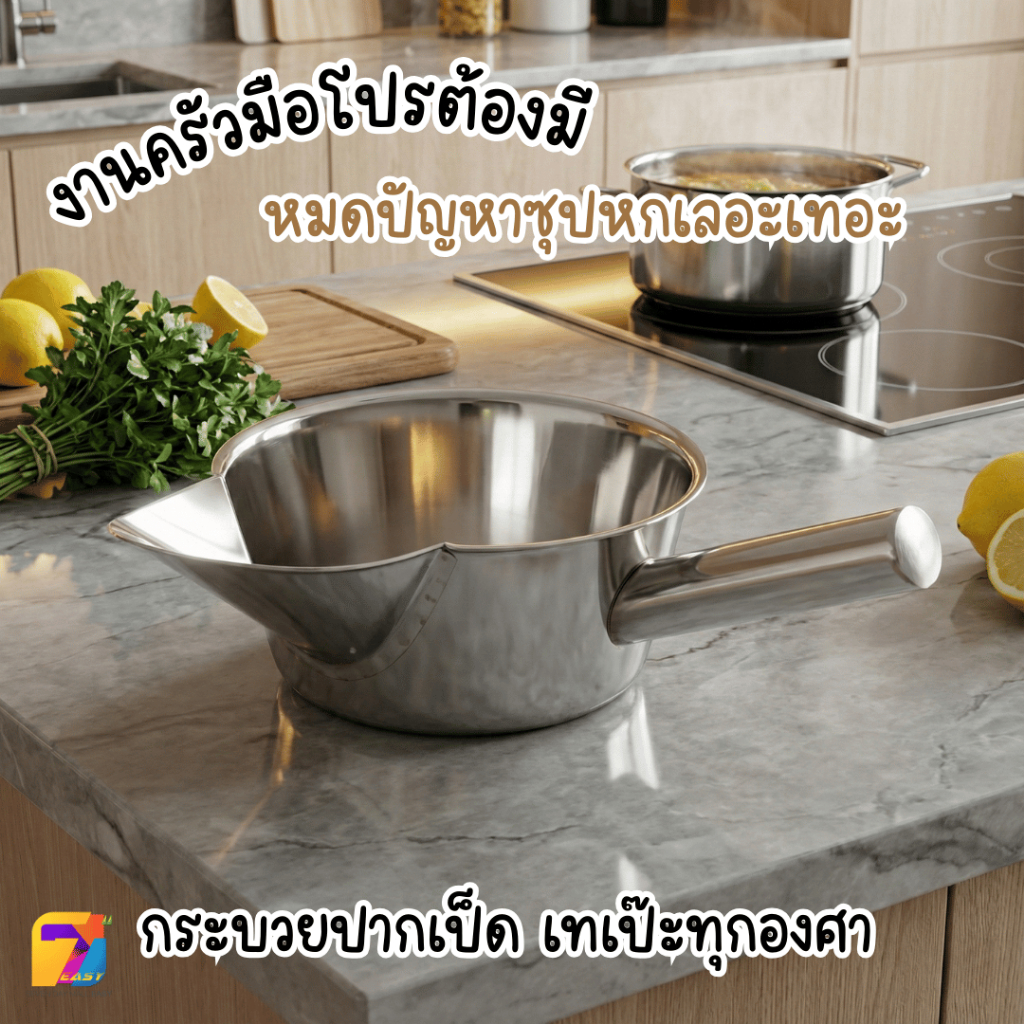 กระบวยปากเป็ด 20 ซม. สแตนเลสหนา หม้อด้ามมีปากเท ต้มน้ำซุป เทง่ายไม่หก