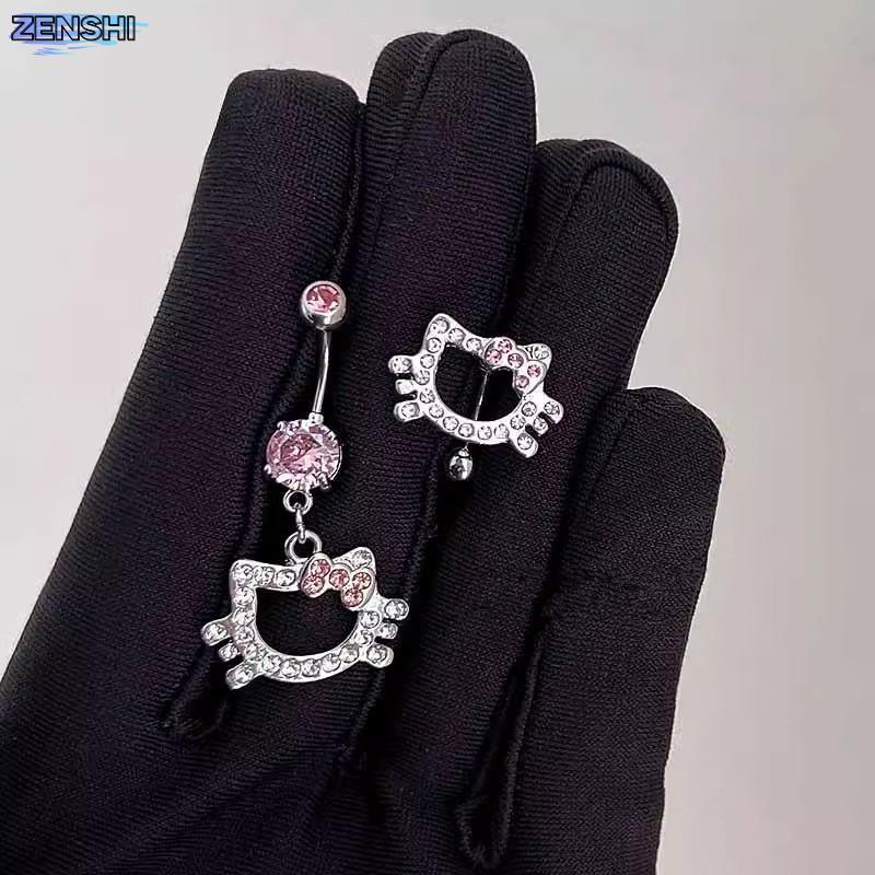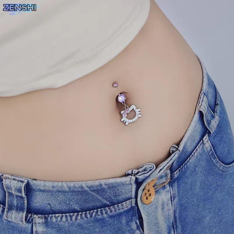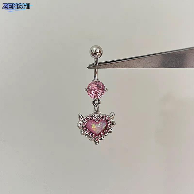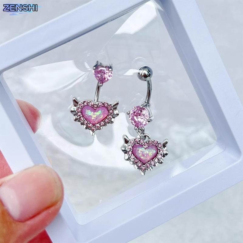 Zenshiaa สีชมพูคริสตัลหัวใจ Belly ปุ่มแหวน Navel เจาะเครื่องประดับเซ็กซี่ Body Rhinestone Decor