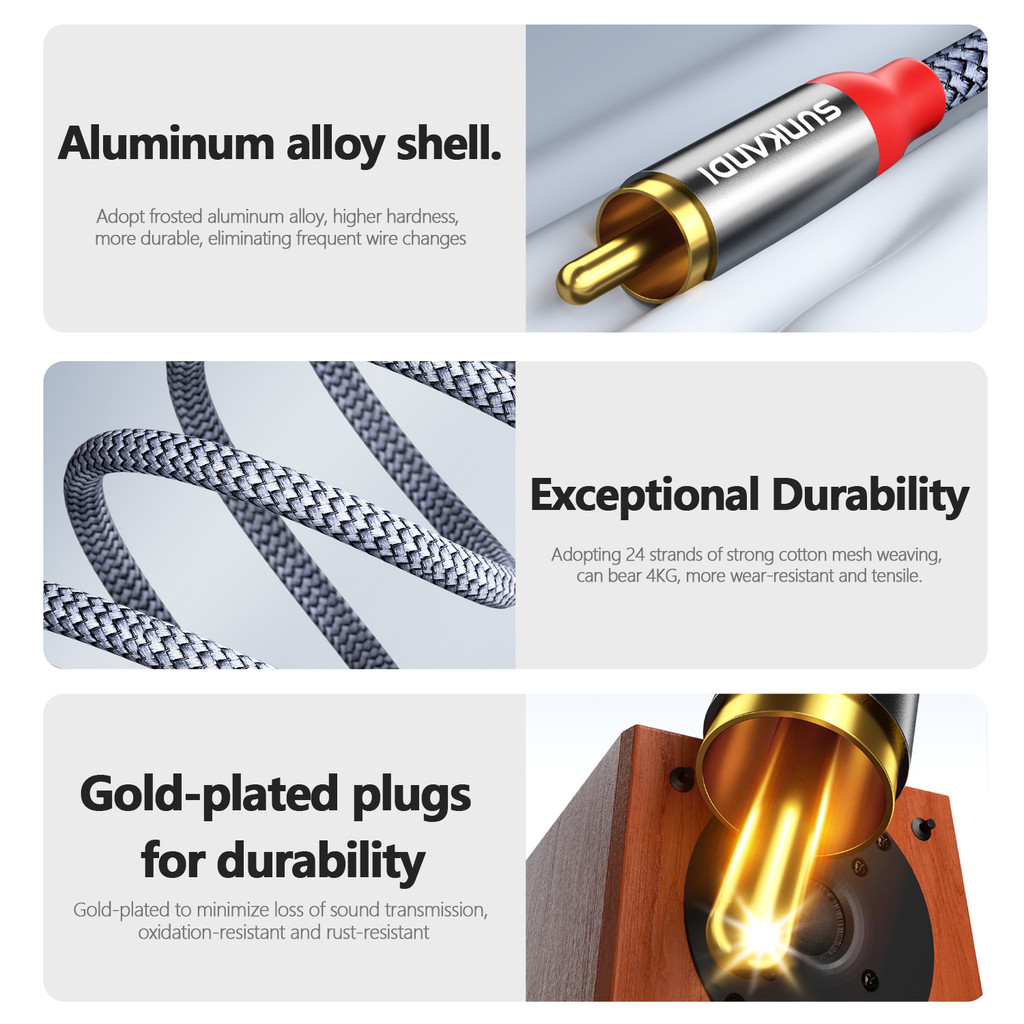 SUNKANDI AUX 3.5 มม.ถึง 3RCA สาย AV สําหรับทีวีโปรเจคเตอร์ Home Audio/วิดีโอ Live performance