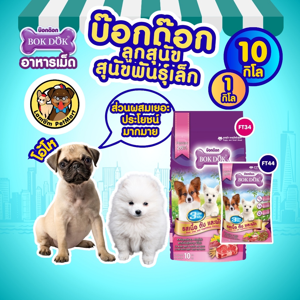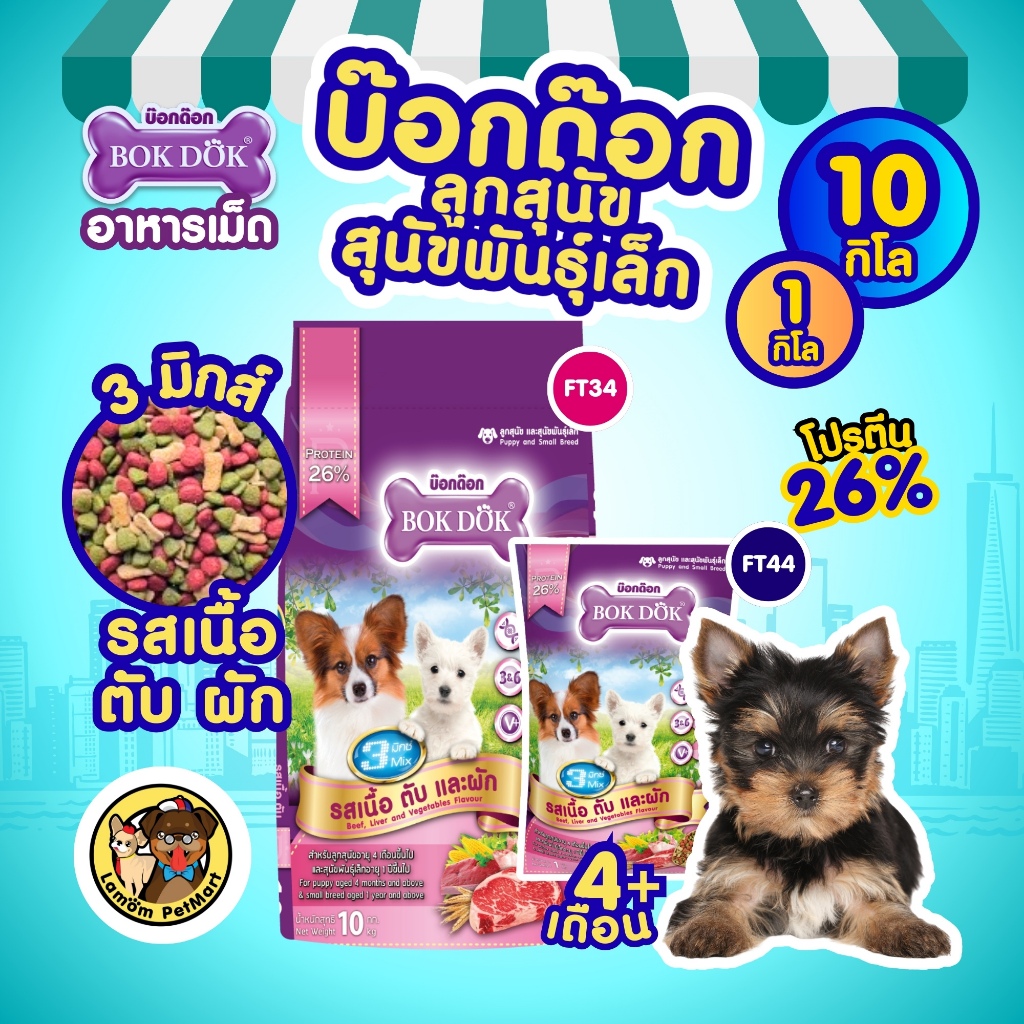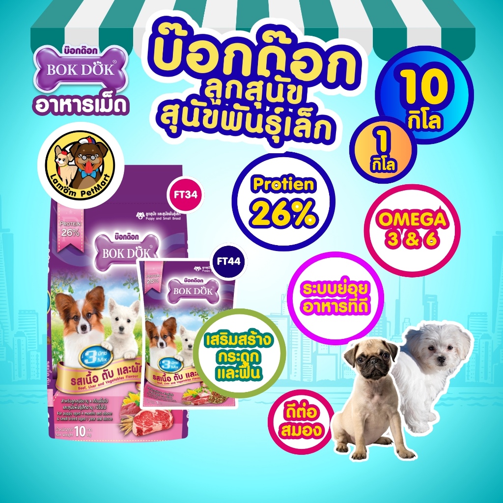 (ถุง 1 kg. X 3 ถุง) อาหารเม็ดลูกสุนัข BOKDOK FT44 รสเนื้อ ตับ ผัก โปรตีน 26% มีโอเมก้า 3,6 ดีต่อเส้นขน