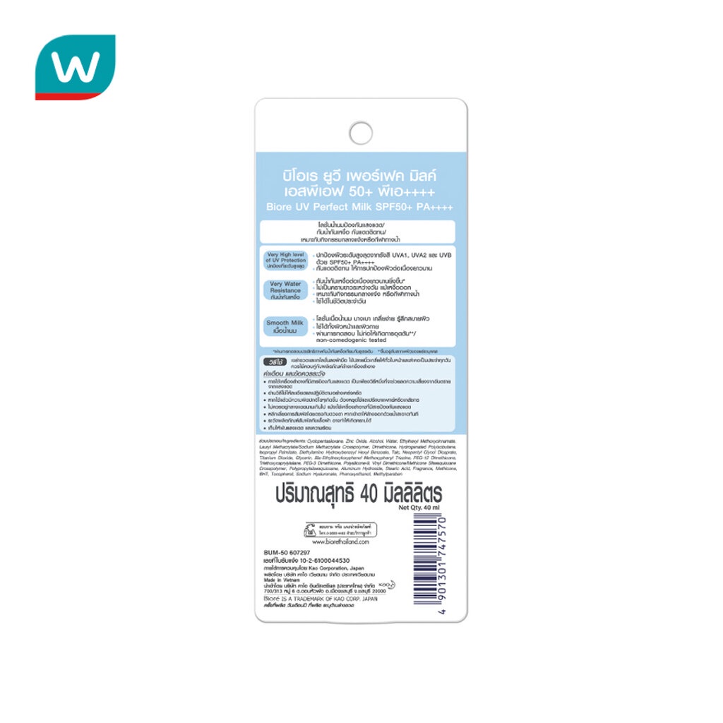 Biore บิโอเร ยูวี เพอร์เฟค มิลค์ เอสพีเอฟ50+พีเอ++++ 40 มล.โลชั่นน้ำนม ป้องกันแสงแดด กันแดด