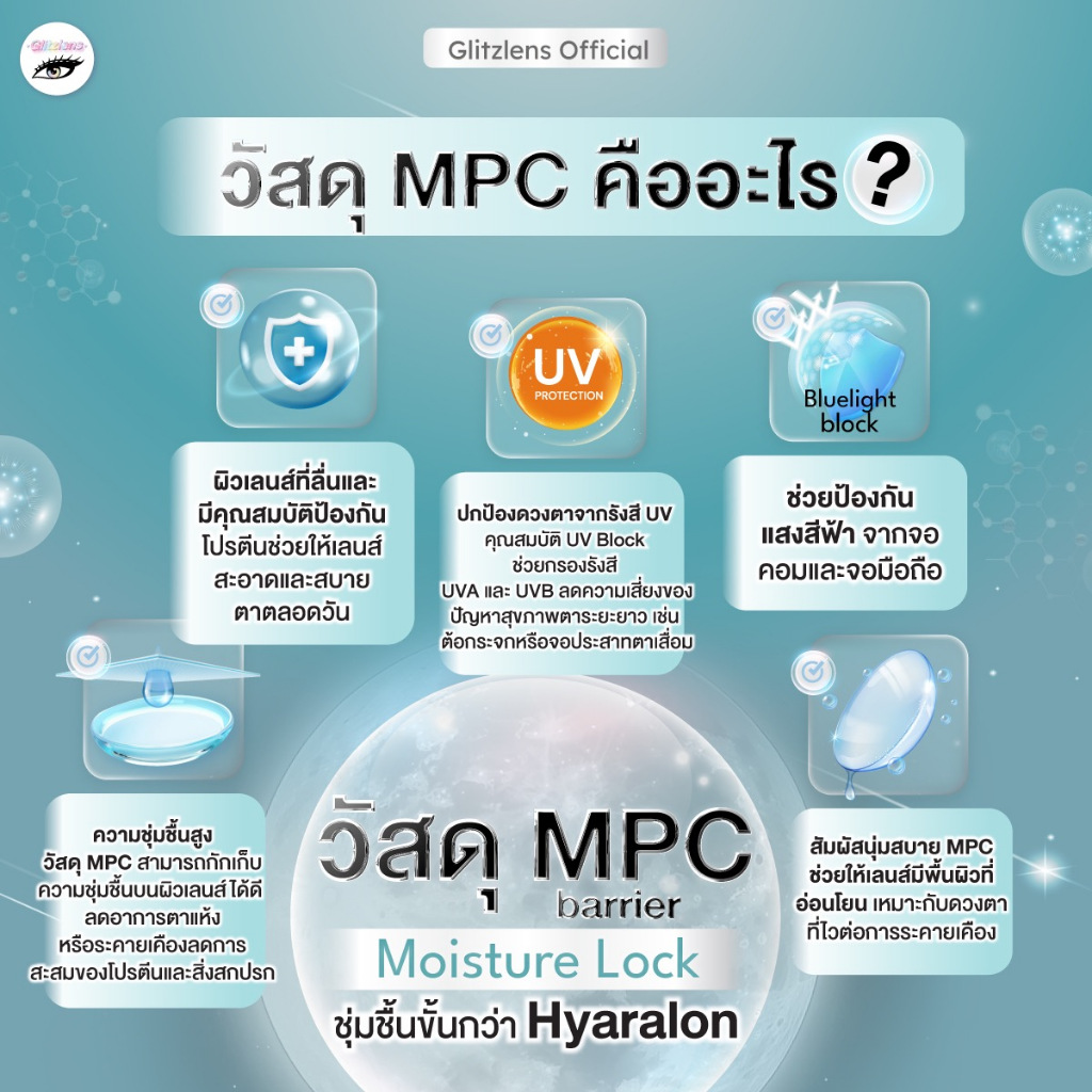 GLITZLENS CRYSTAL CLEAR คอนแทคเลนส์ใสรายเดือน วัสดุ MPC กันแสงสีฟ้า/UV Moisture lock