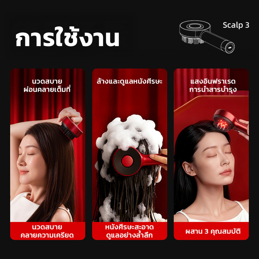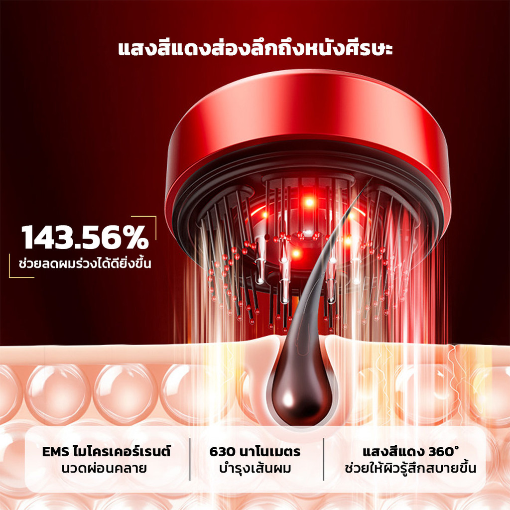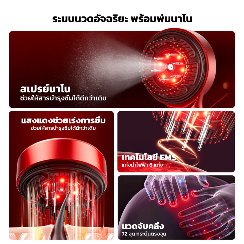 หวีนวดบำรุงเส้นผม รุ่นS18 เทคโนโลยีแสงไฟสีแดง (Red Light) ระบบEMS พร้อมพ่นสเปรย์ละเอียดระดับนาโน