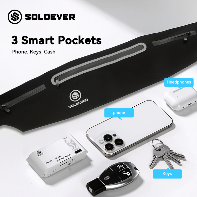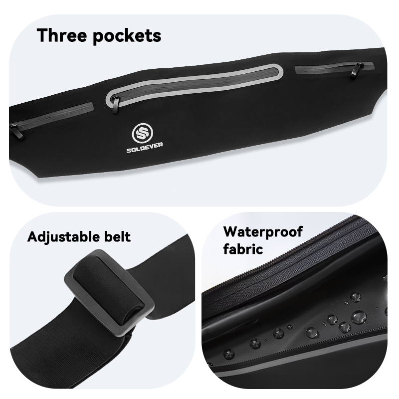 SOLOEVER IPX8กันน้ำ กระเป๋าคาดเอวสำหรับเล่นกีฬา กีฬากระเป๋าคาดเอวกระเป๋ากระเป๋าเข็มขัดวิ่งจ๊อกกิ้ง