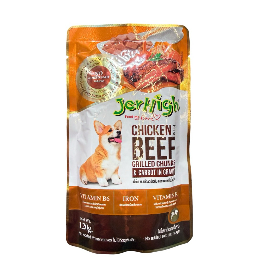 Jerhigh เจอร์ไฮ (1โหล) อาหารเปียกสุนัขแบบซอง Complete & Balance (เกรวี่120g) และ (เยลลี่130g) ขายดี!!