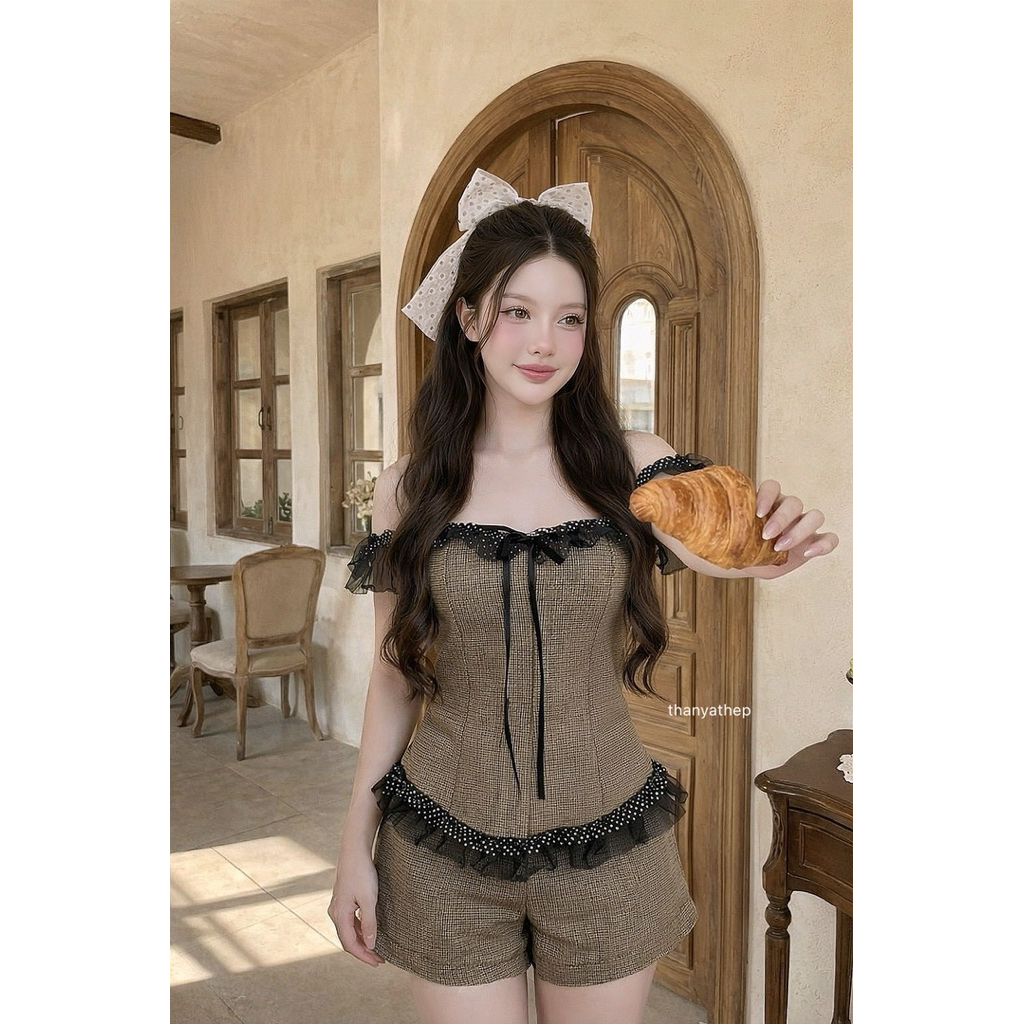 Phapassz - เซท2ชิ้น เกาะอกแต่งระบายลูกไม้ ผ้าทอทวิส ดีเทลสวย #Thanyathep