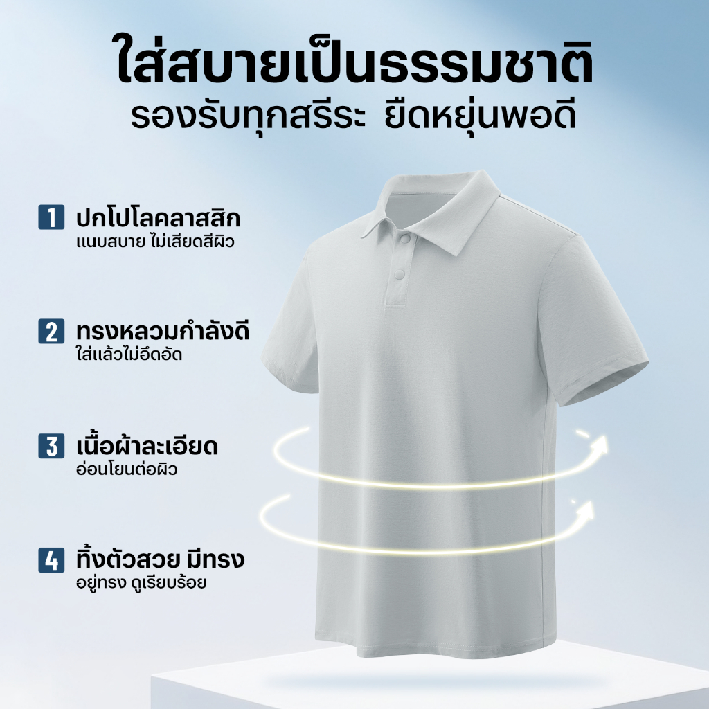 HeaSmile เสื้อโปโล เสื้อแขนสั้น เสื้อคอปกสำหรับผู้ชาย ทรงหลวม แห้งไว ผ้านุ่มระบายอากาศ ยับยั้งแบคทีเรีย (M-SGPOLO)