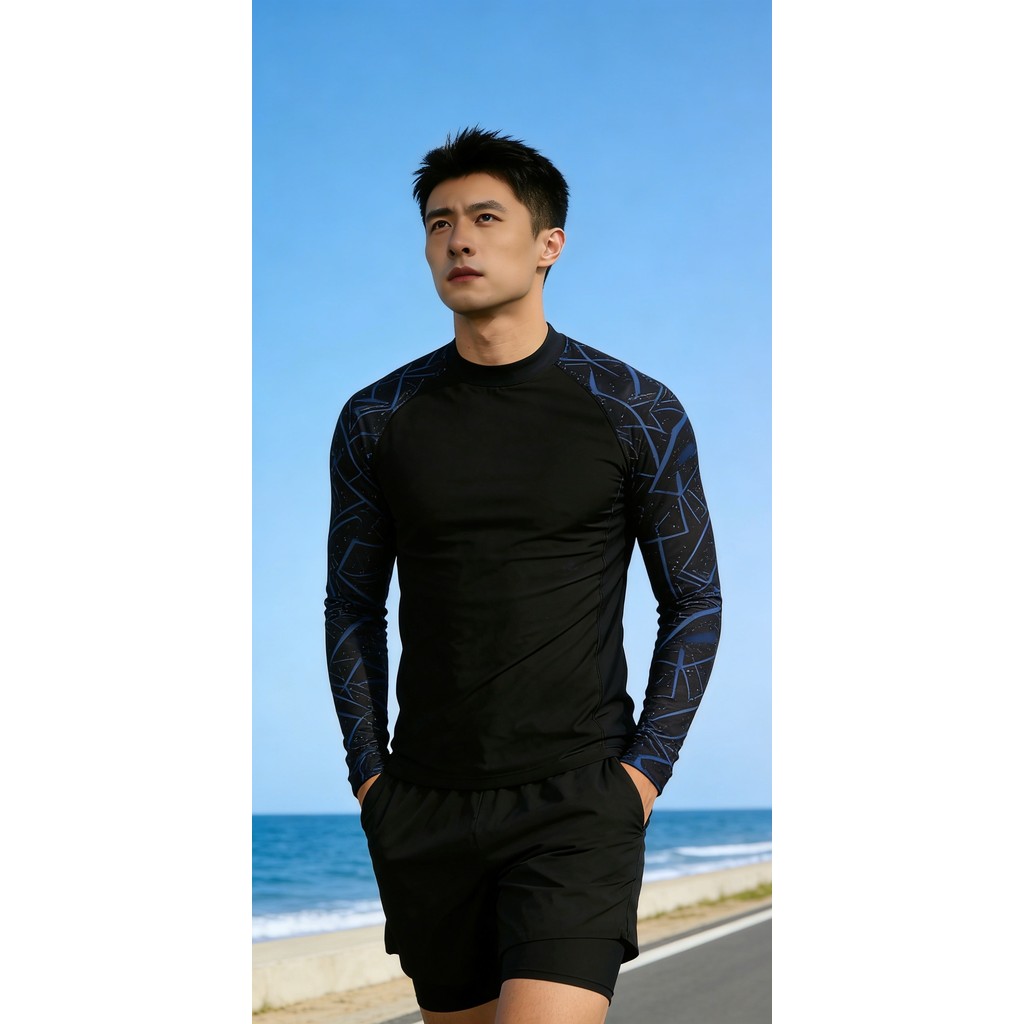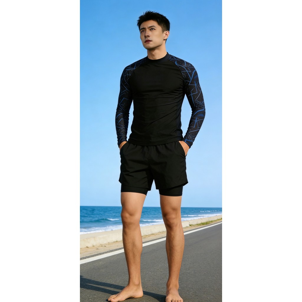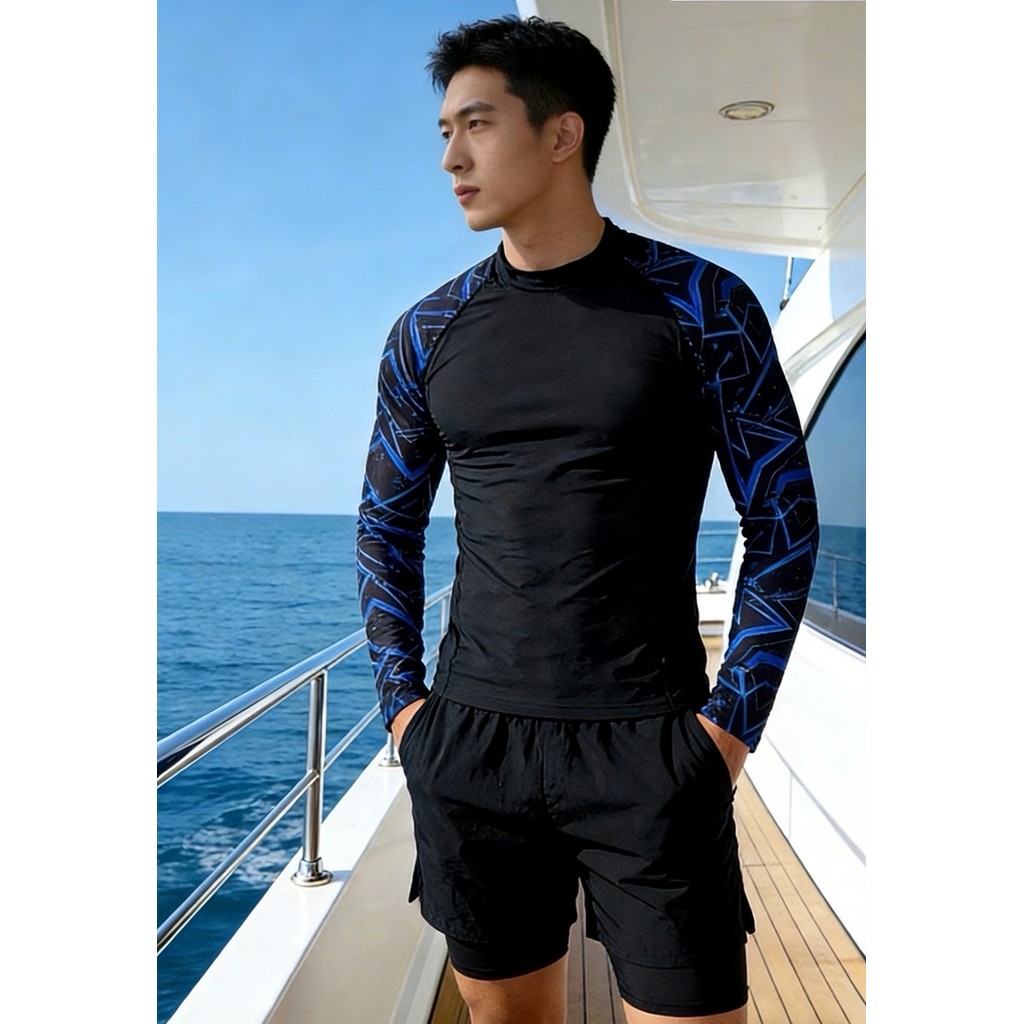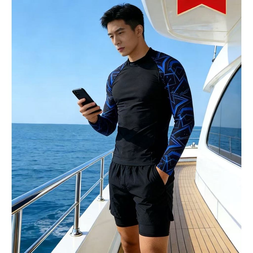 ชุดว่ายน้ำชายขายดีที่สุด ชุดว่ายน้ำสองชิ้น สไตล์สปอร์ต เสื้อแขนยาว + กางเกงขาสั้น มีซับใน รุ่น 91613+700-06