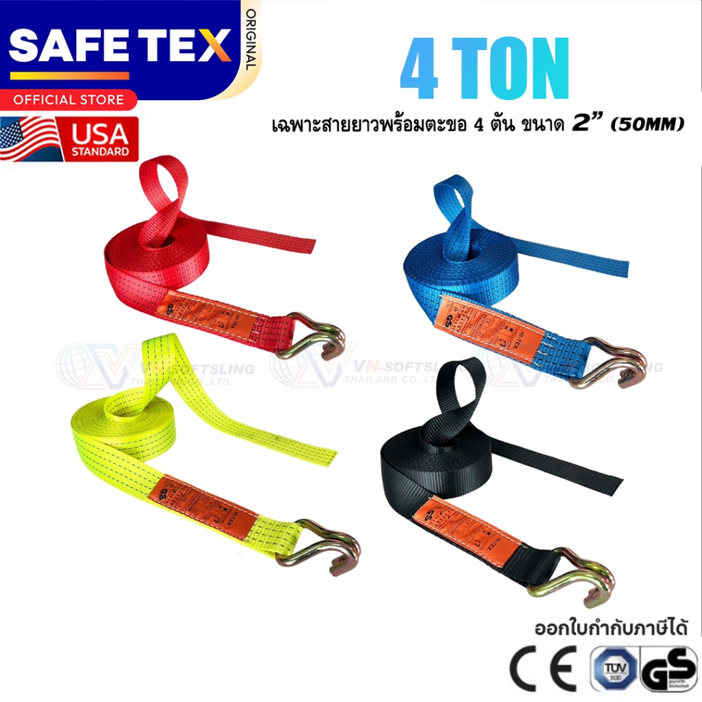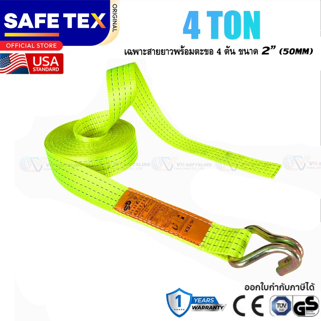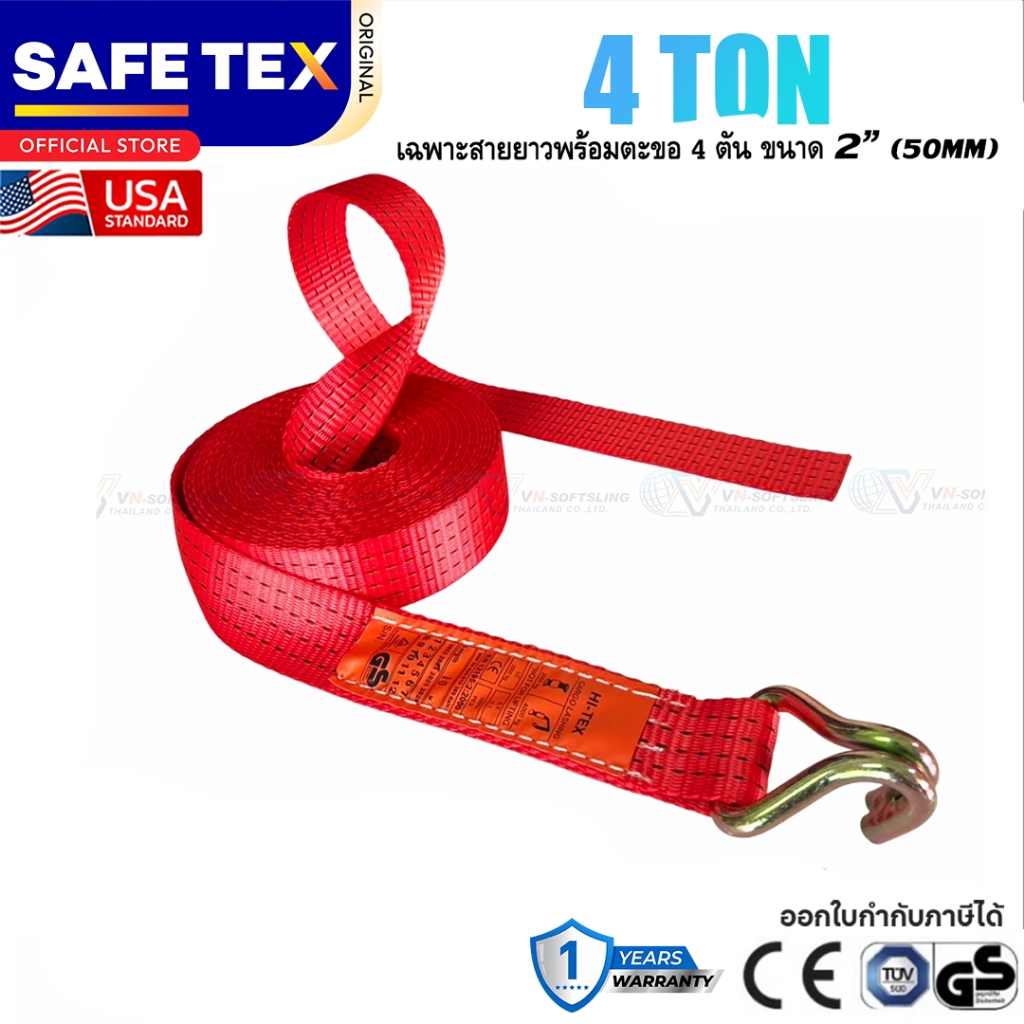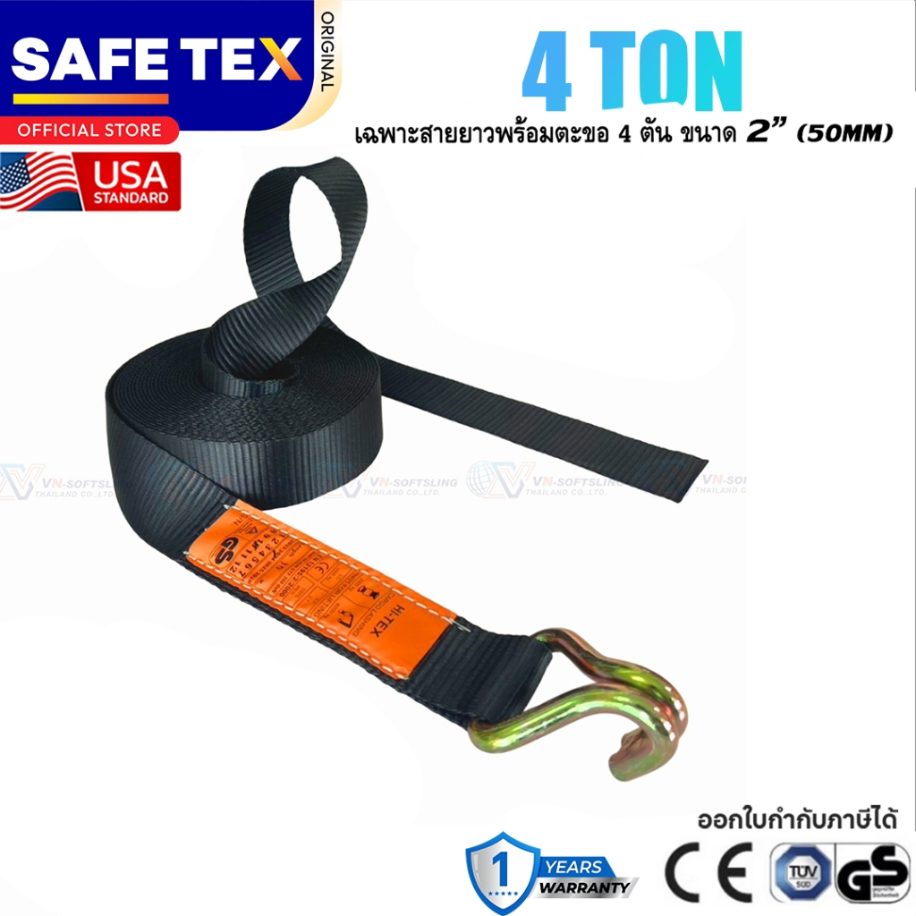 สายยาวพร้อมตะขอ 2 นิ้ว 4 ตัน (ไม่มีหัว) SAFETEX USA สายรัดของ สายรัดรถบรรทุก สายรัดโพลีเอสเตอร์100%