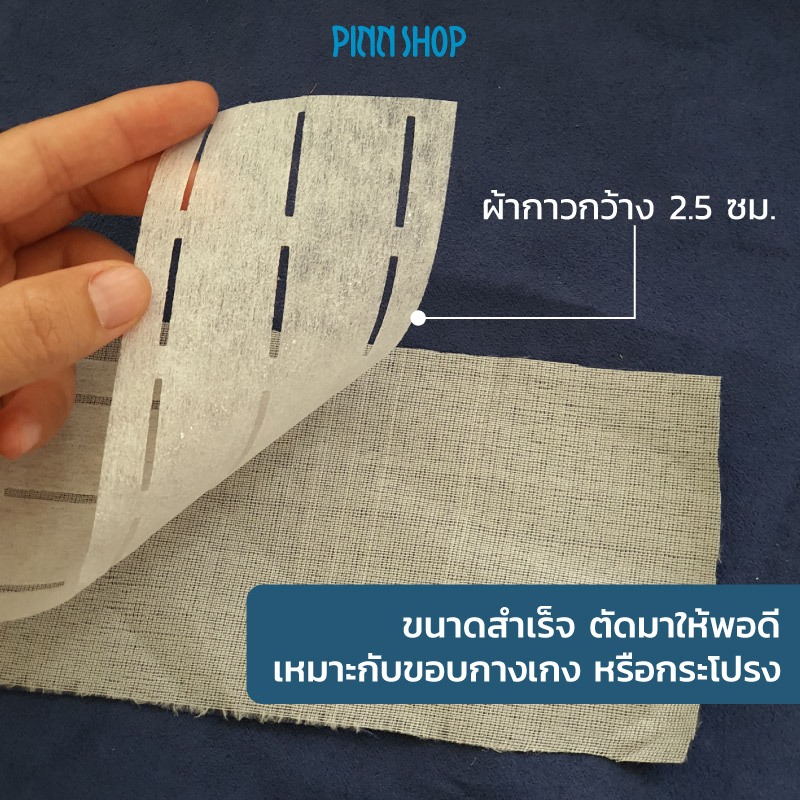 ผ้ากาวสำหรับรีด เย็บขอบกางเกง ขอบกระโปรง มีความกว้าง 2.5 ซม. ขนาดสินค้า 25 ซม. x 300 ซม. ยี่ห้อ Hemline