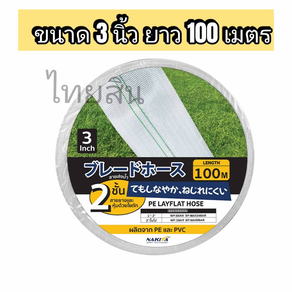 สายส่งน้ำ Super PE ยี่ห้อ Nakita สายสีขาว 1.5 นิ้ว / 2 นิ้ว / 3 นิ้ว ความยาว 100 เมตร