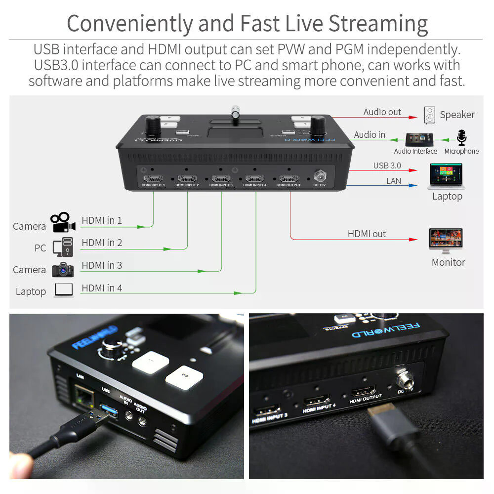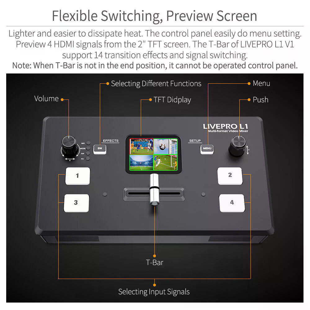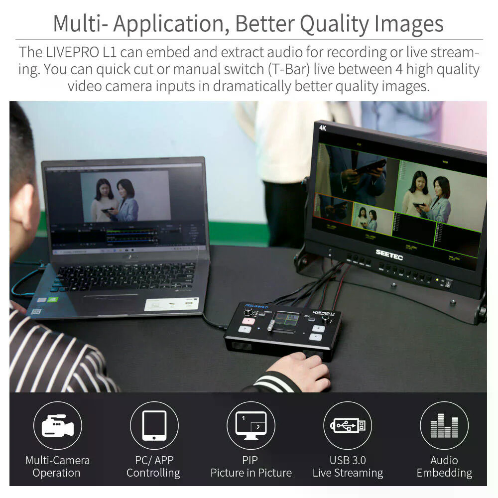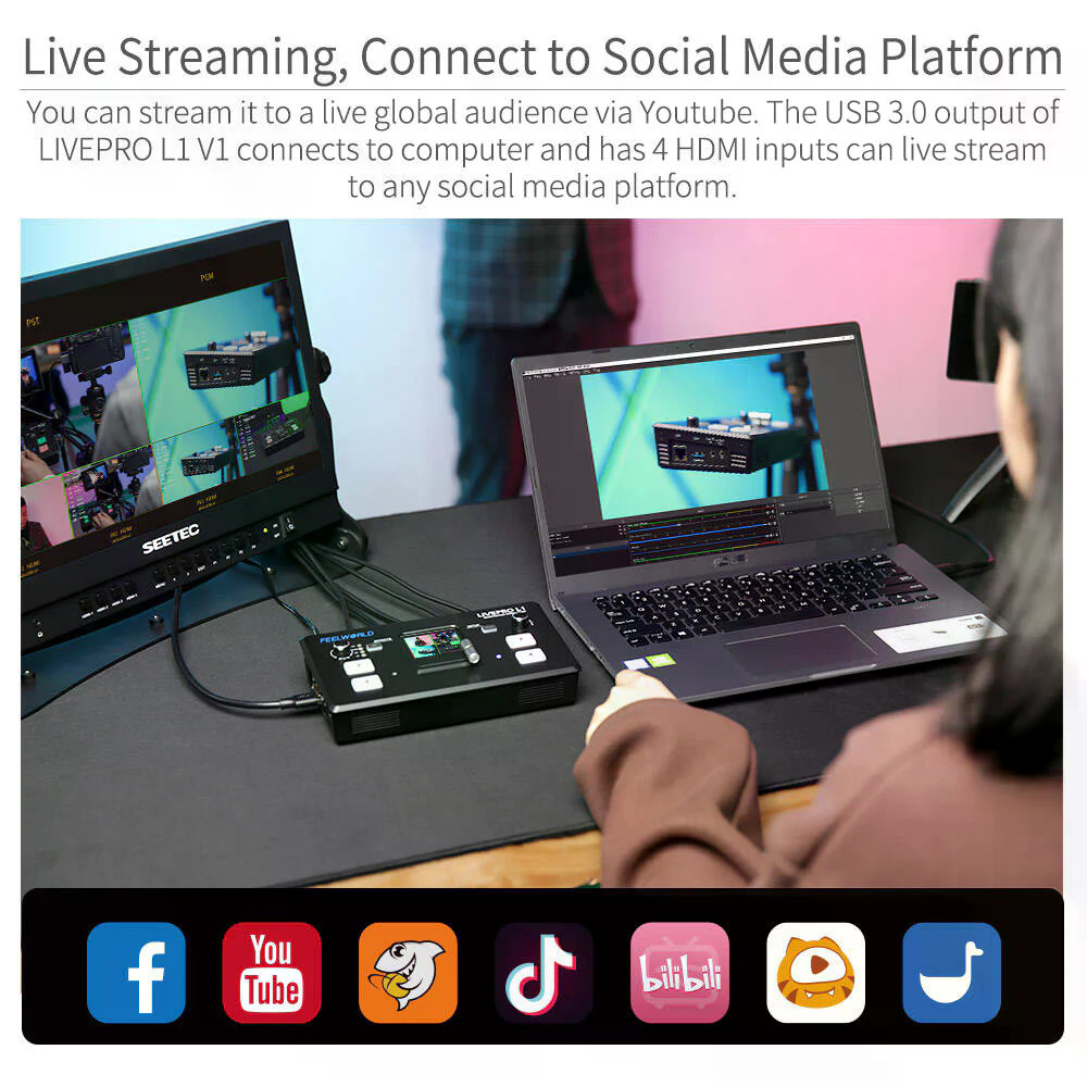 FEELWORLD LIVEPRO L1 V1 Multi Camera Video Mixer Switcher LCD Screen 4 HDMI Input USB3.0 Live Stream ประกันศูนย์ไทย