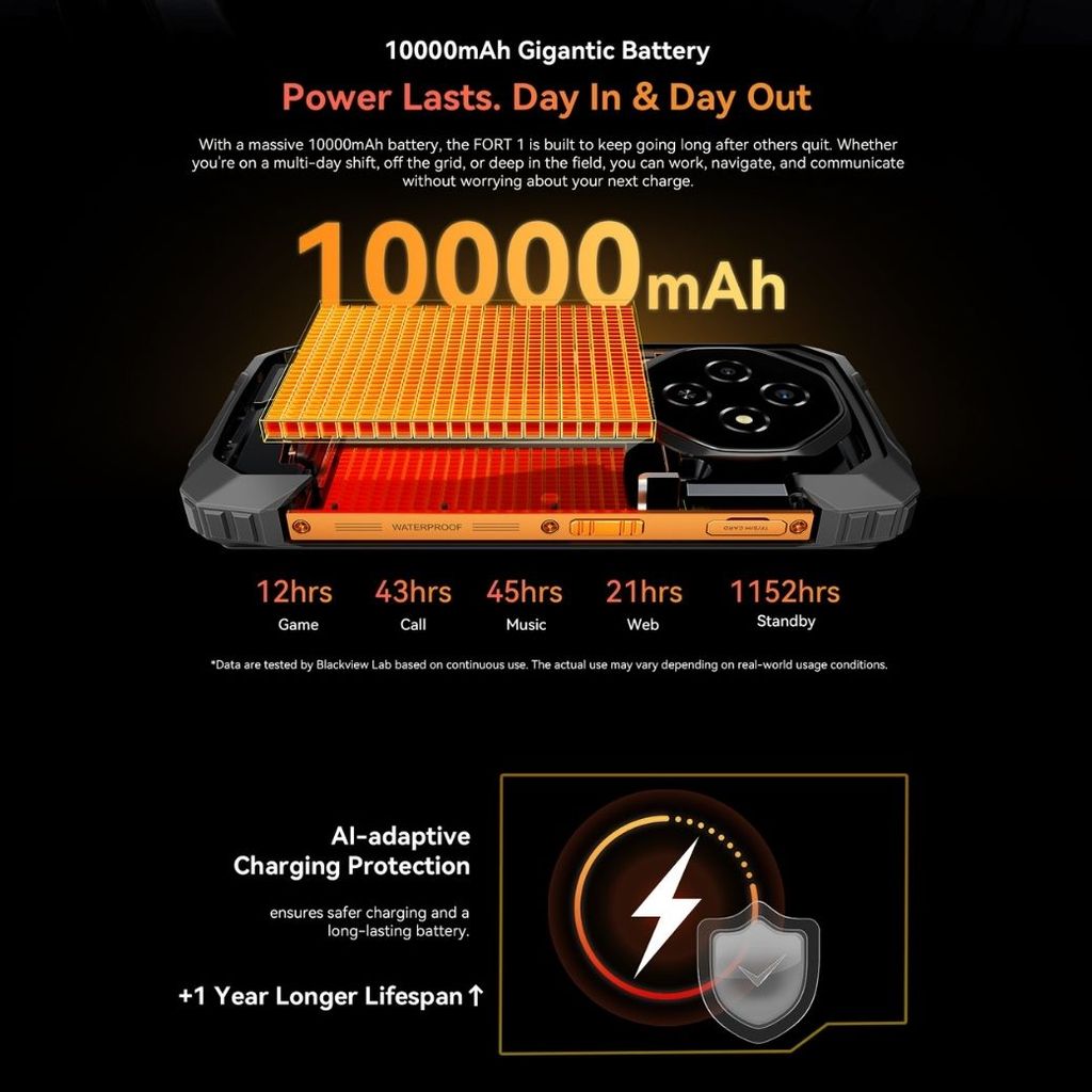 โทรศัพท์มือถือ Blackview Fort 1 แบต 10000mAh กันกระแทก กันน้ำ เกรดทหาร 12/256GB Android 15 ศูนย์ไทย