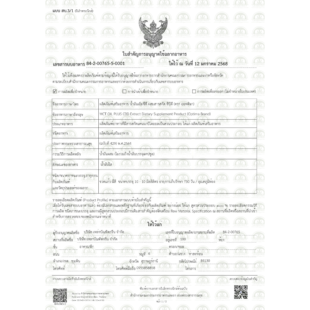OPTIMA NATURAL ซี.บี.ดี OIL FDA (มีอย.) 5% 10ML อาหารเสริมน้ำมันMCTผสมสารสกัดซี.บี.ดี