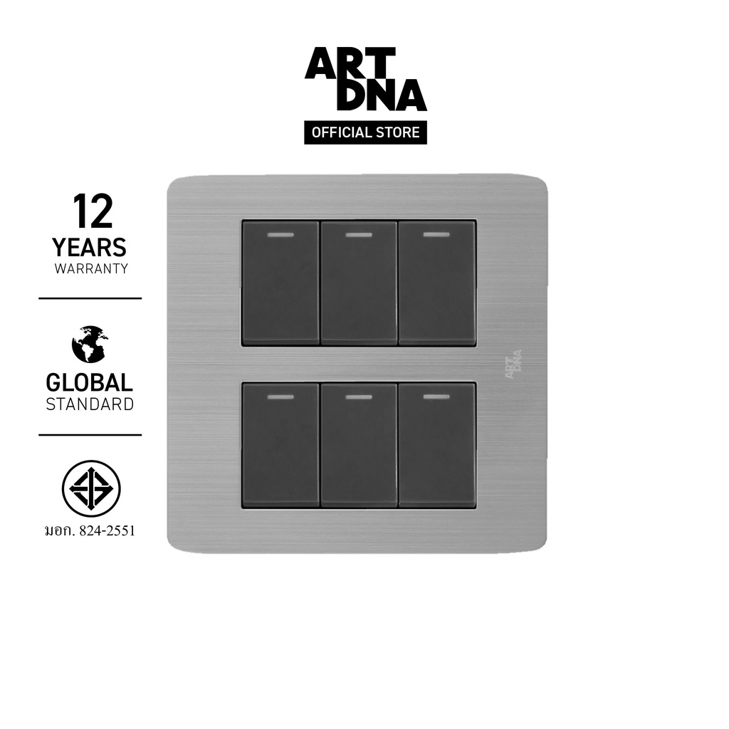 ART DNA รุ่น A89 Switch 6 Gang 1 Way Size S สีสแตนเลส + สีเทา ขนาด 4x4 สวิตซ์ไฟโมเดิร์น สวิตซ์ไฟสวยๆ