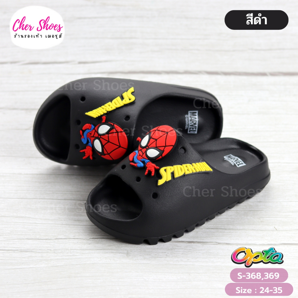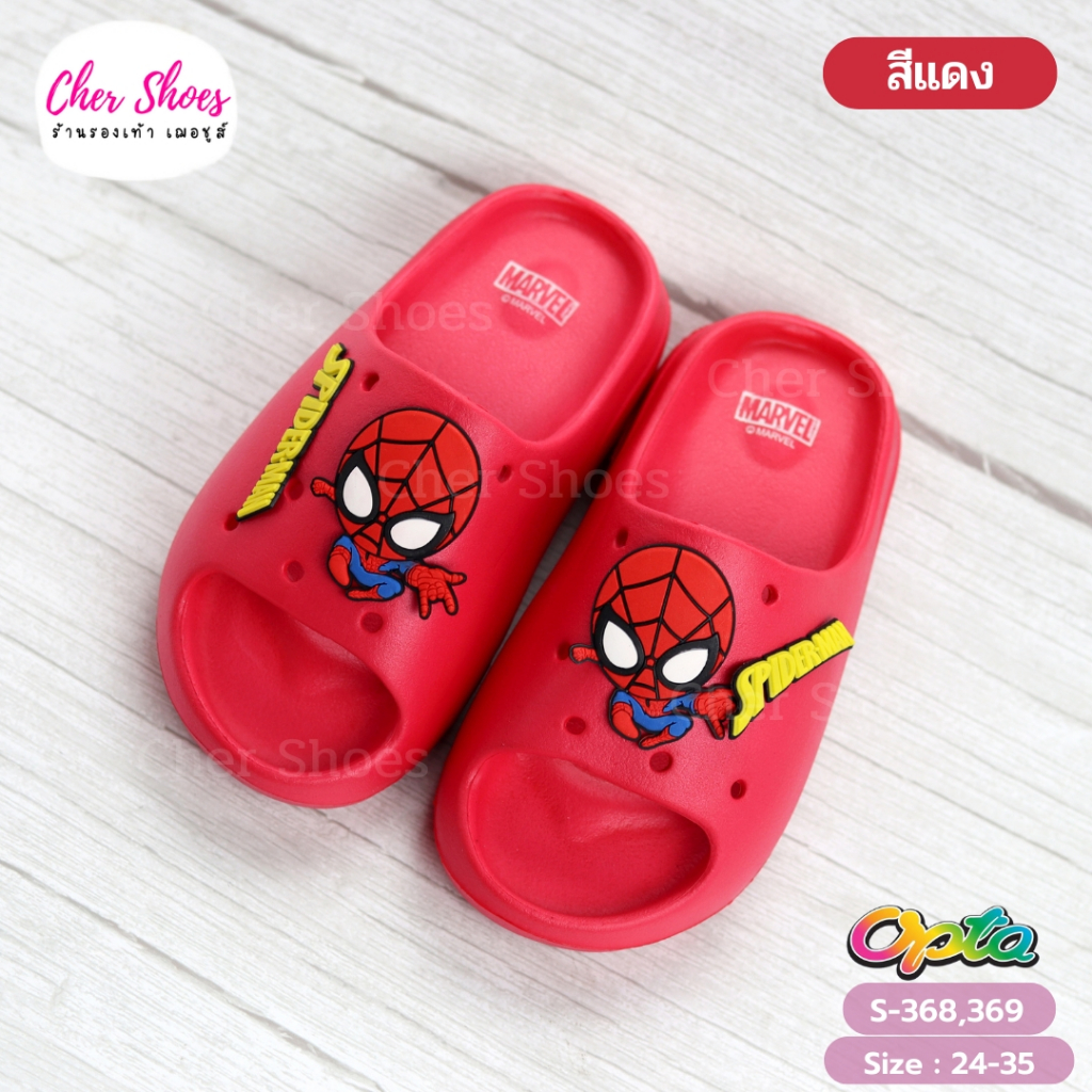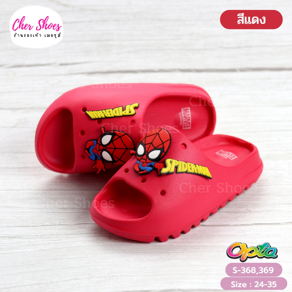 รองเท้าแตะเด็กผู้ชาย แบบสวม OPTA S368,S369 ลายสไปเดอร์แมน ( Spider Man ) ลิขสิทธิ์แท้ สีแดง สีดำ สีขาว
