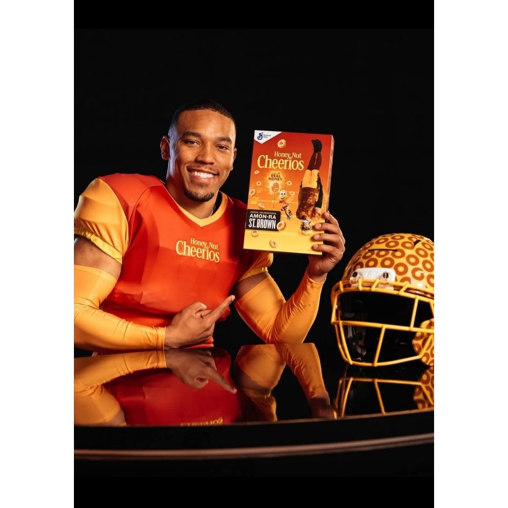 Honey Nut Cheerios รุ่นลิมิเต็ดเอดิชันเป็นแคมเปญ "Cereal Celebrations" ของ General Millsมีภาพของ Amon-Ra St. Brown.
