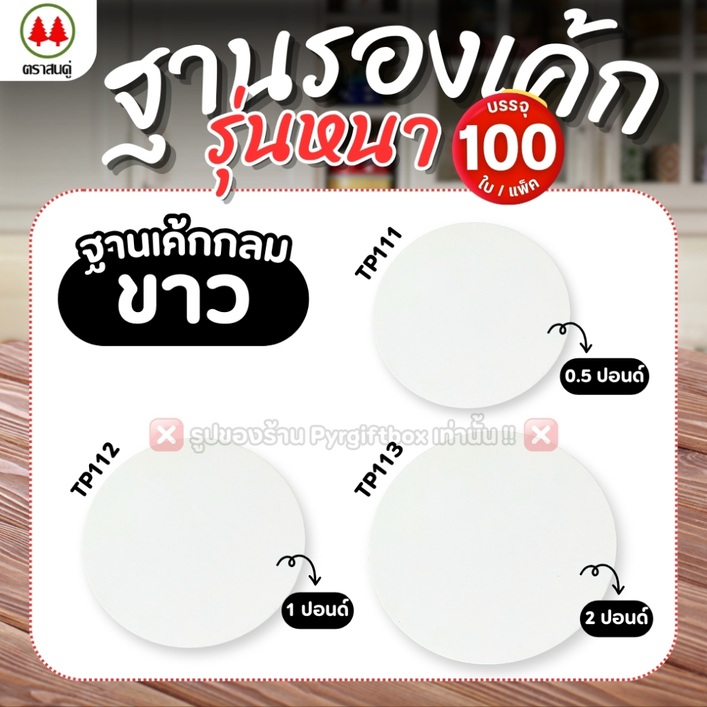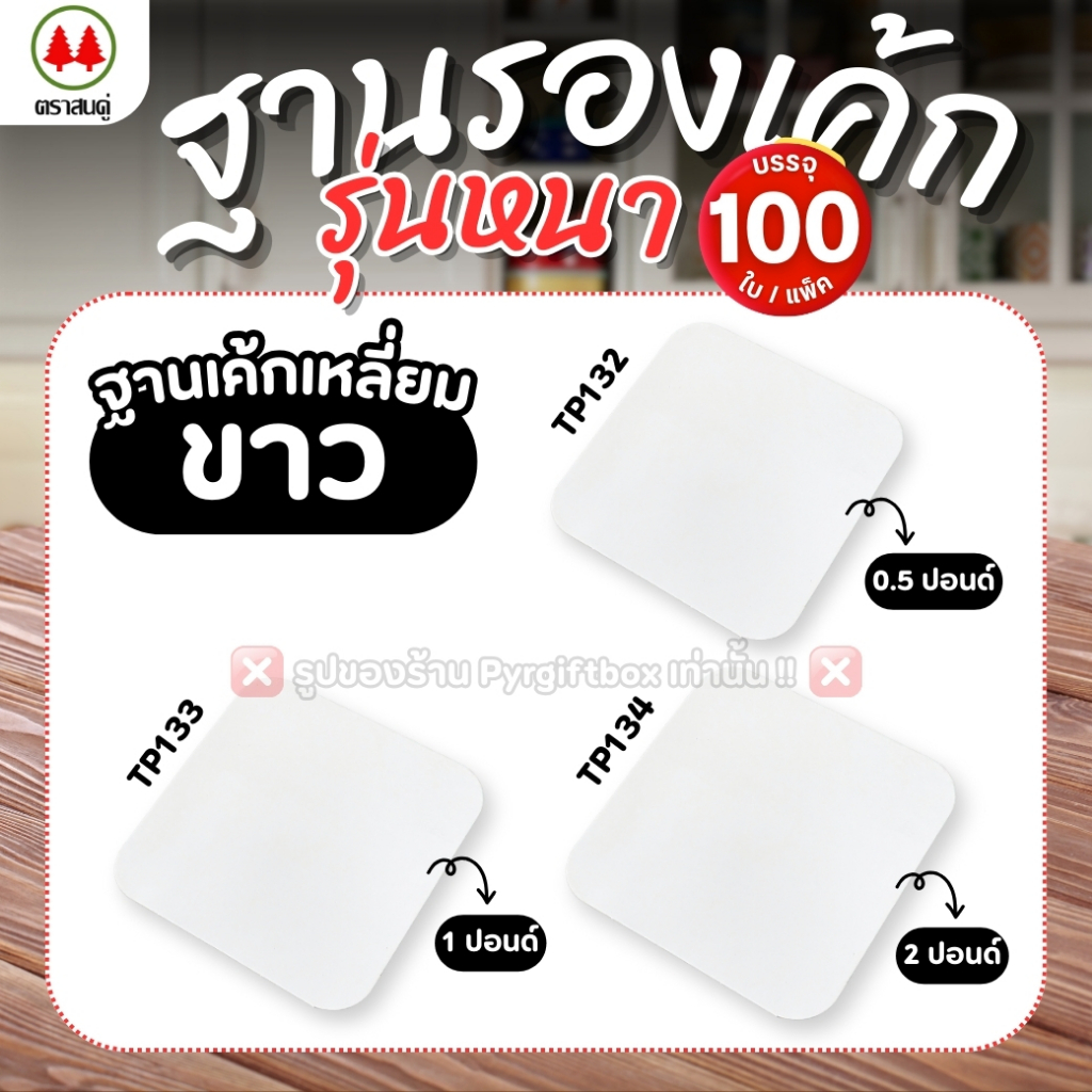 ฐานรองเค้ก สีขาว รุ่นหนา (แพ็ค100ใบ) ฐานแบบเหลี่ยม ฐานแบบกลม ตราสนคู่ ขนาด 0.5 ปอนด์ 1 ปอนด์ 2 ปอนด์