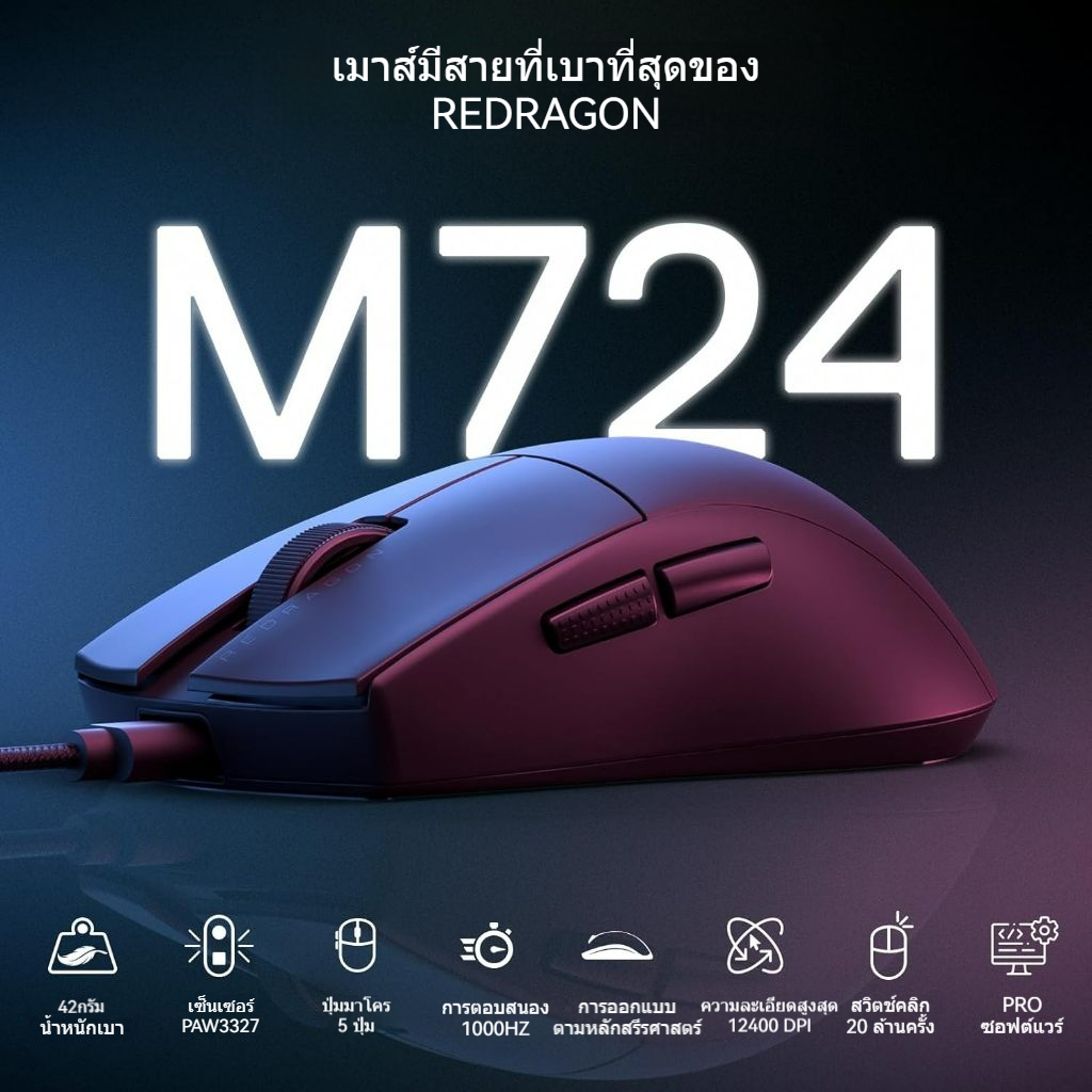 Redragon K1NG M724 เมาส์สําหรับเล่นเกมแบบมีสาย Kabel Optical Gaming Mouse 12400 DPI Ergonomic 42g Ultra-Light