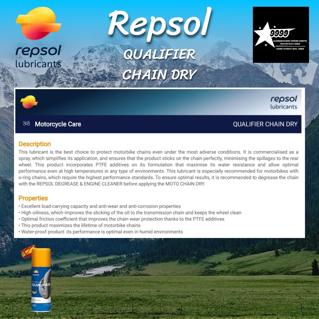 REPSOL QUALIFIER CHAIN DRY สเปรย์หล่อลื่นเคลือบโซ่ 400 ml.