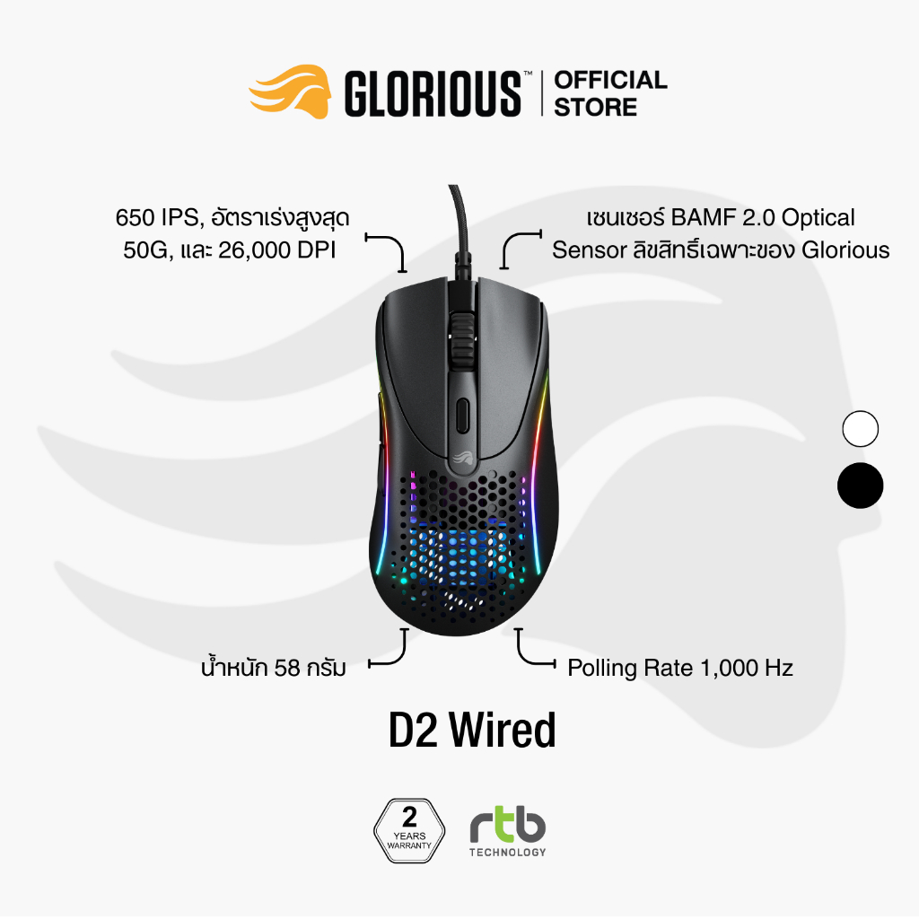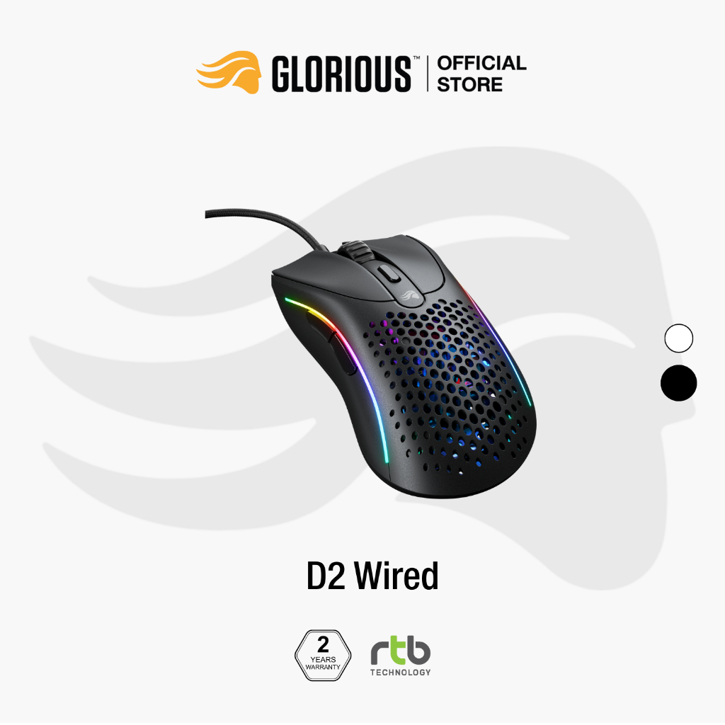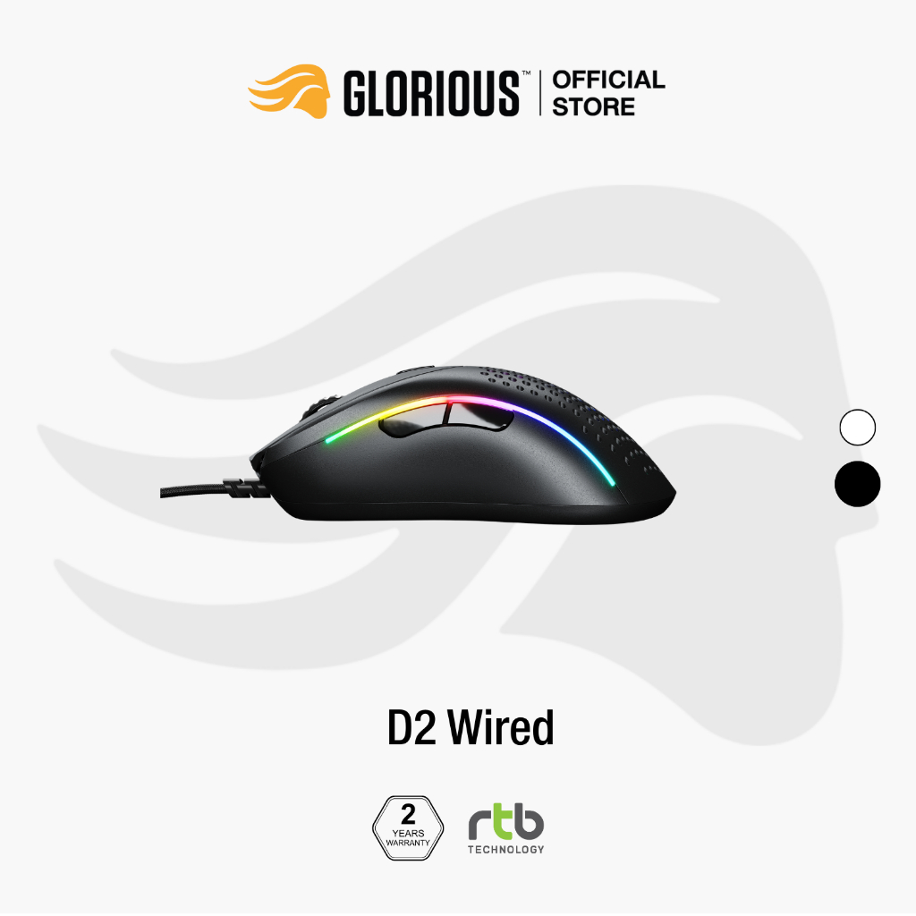 Glorious Model D 2 เมาส์เกมมิ่ง มีสาย Wired Gaming Mouse น้ำหนักเบา ไฟ RGB ประกันศูนย์ไทย 2 ปี