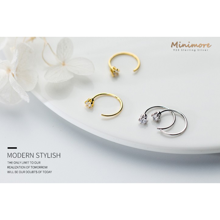 [SE111]🌟ต่างหูเงินแท้ 92.5%🌟 ต่างหูคล้อง มงกุฎเพชร CZ 💎 ตัวเรือนเงินแท้ ก้านสลัก มินิมอล