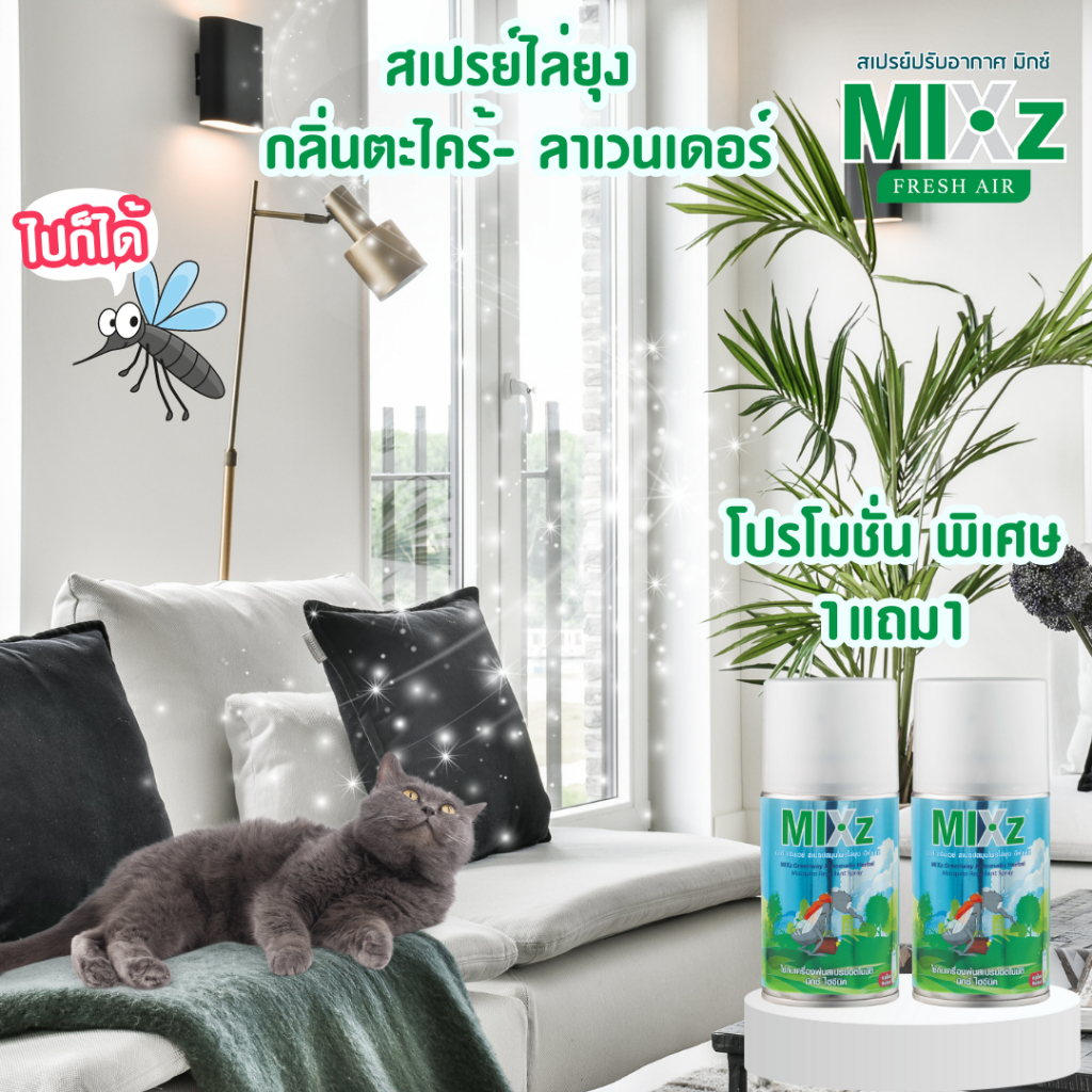 [ 1แถม1 ] MIXz Hygienic Automatic รีฟิล สเปรย์ไล่ยุง กลิ่นตะไคร้- ลาเวนเดอร์ ขนาด 300 ml.