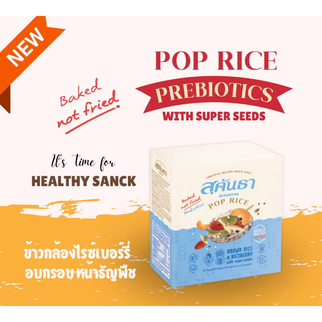 สุคันธา ป๊อปไรซ์ ข้าวกล้องไรซ์เบอร์รี่อบกรอบหน้าธัญพืช (60 กรัม) Pop Rice Brown Rice with Super Seeds Sukantha