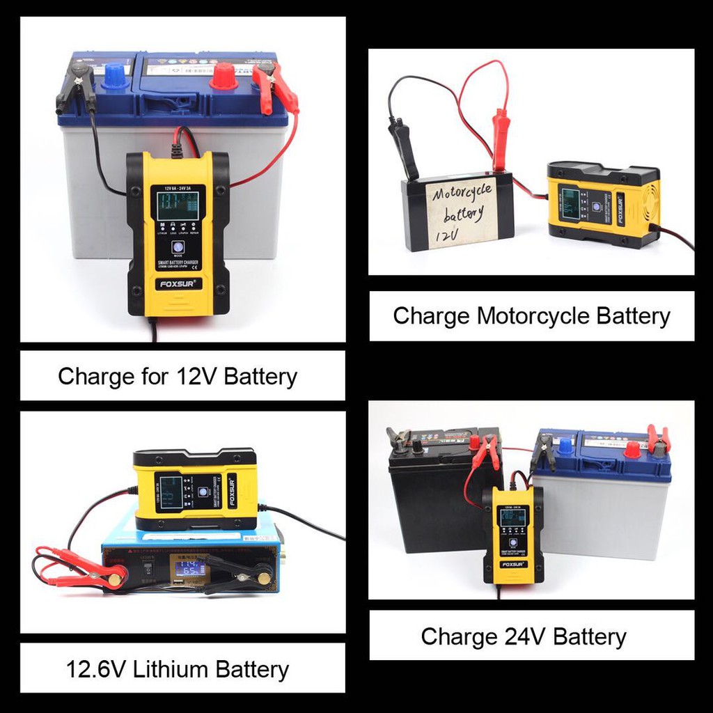 FOXSUR เครื่องชาร์จอัจฉริยะและซ่อมแบตเตอรี่รถยนต์ Pulse Repair Charger 12V 6A 6-120Ah /24V 3A(FOXSUR 2403)