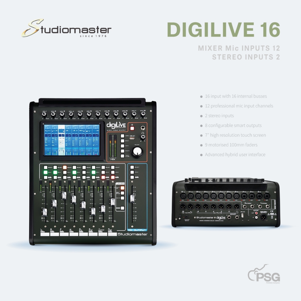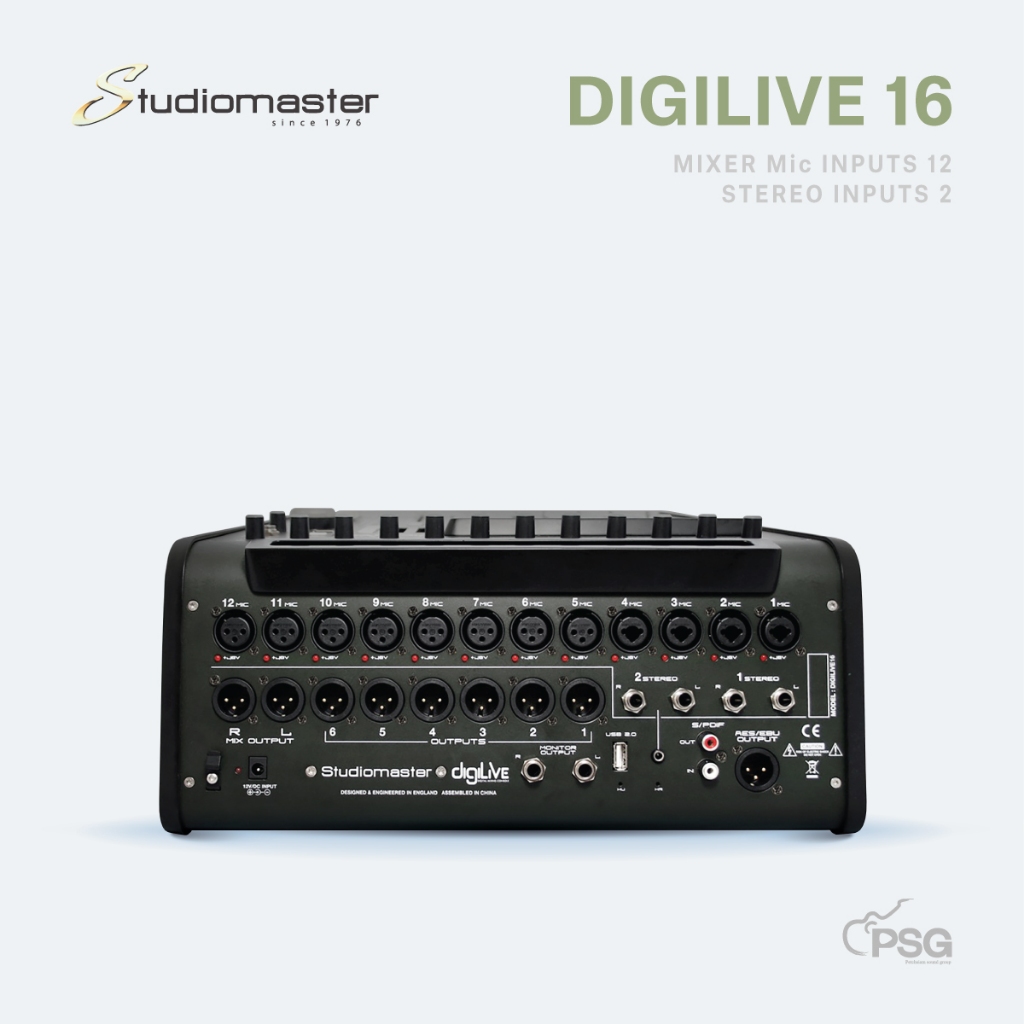 STUDIOMASTER : DIGILIVE 16 MIXER Mic Inputs: 12 Stereo Inputs: 2 ( ดิจิตอล มิกเซอร์ )