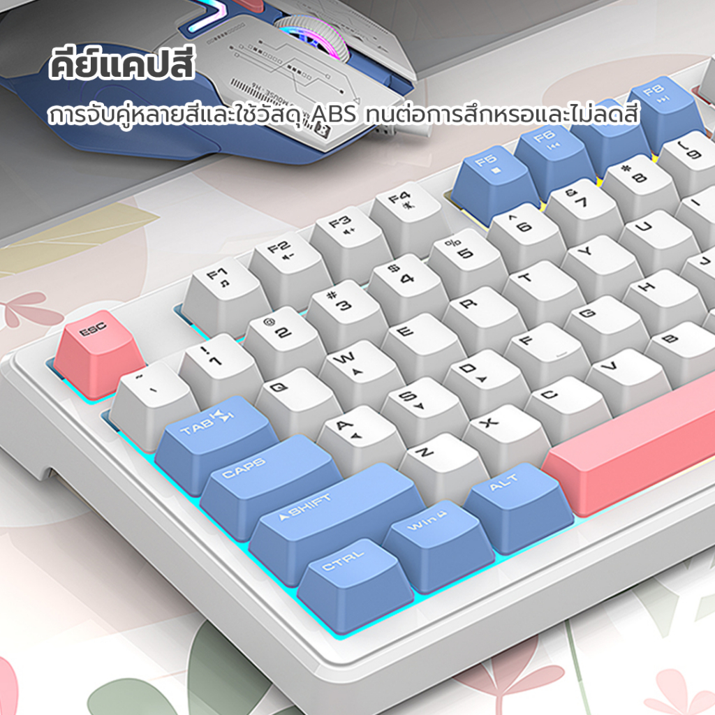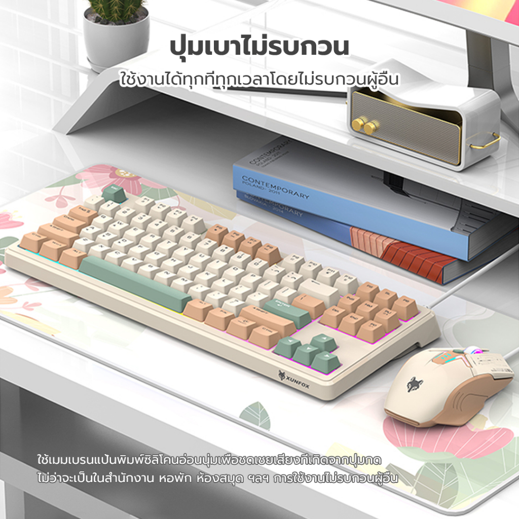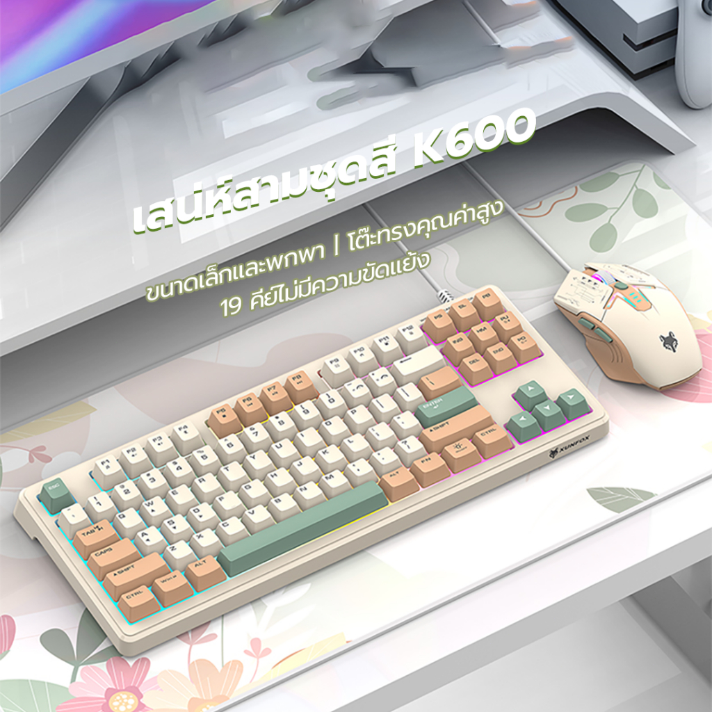ชุดคีย์บอร์ดและเมาส์เกมมิ่ง (ไทย-อังกฤษ) XUNFOX K600 | 87 คีย์ | ปุ่มเงียบ | ไฟ RGB | 19-Key Rollover
