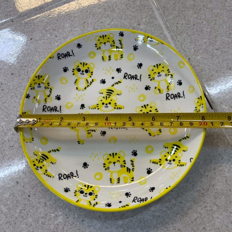 จานเซรามิก 8 นิ้ว จานข้าว จานลายเสือ สีเหลือง ทำจากเซรามิกเนื้อดี เข้าไมโครเวฟได้