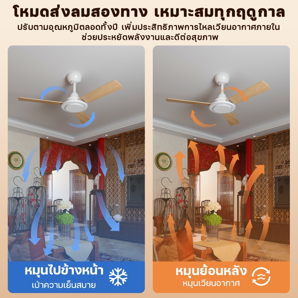 HITEL สไตล์ญี่ปุ่น พัดลมเพดานลายไม้ 42 นิ้ว ใบพัดไม้แท้ มอเตอร์ DC 6 ระดับ พร้อมรีโมทและฟังก์ชันหันกลับ-หันหน้า